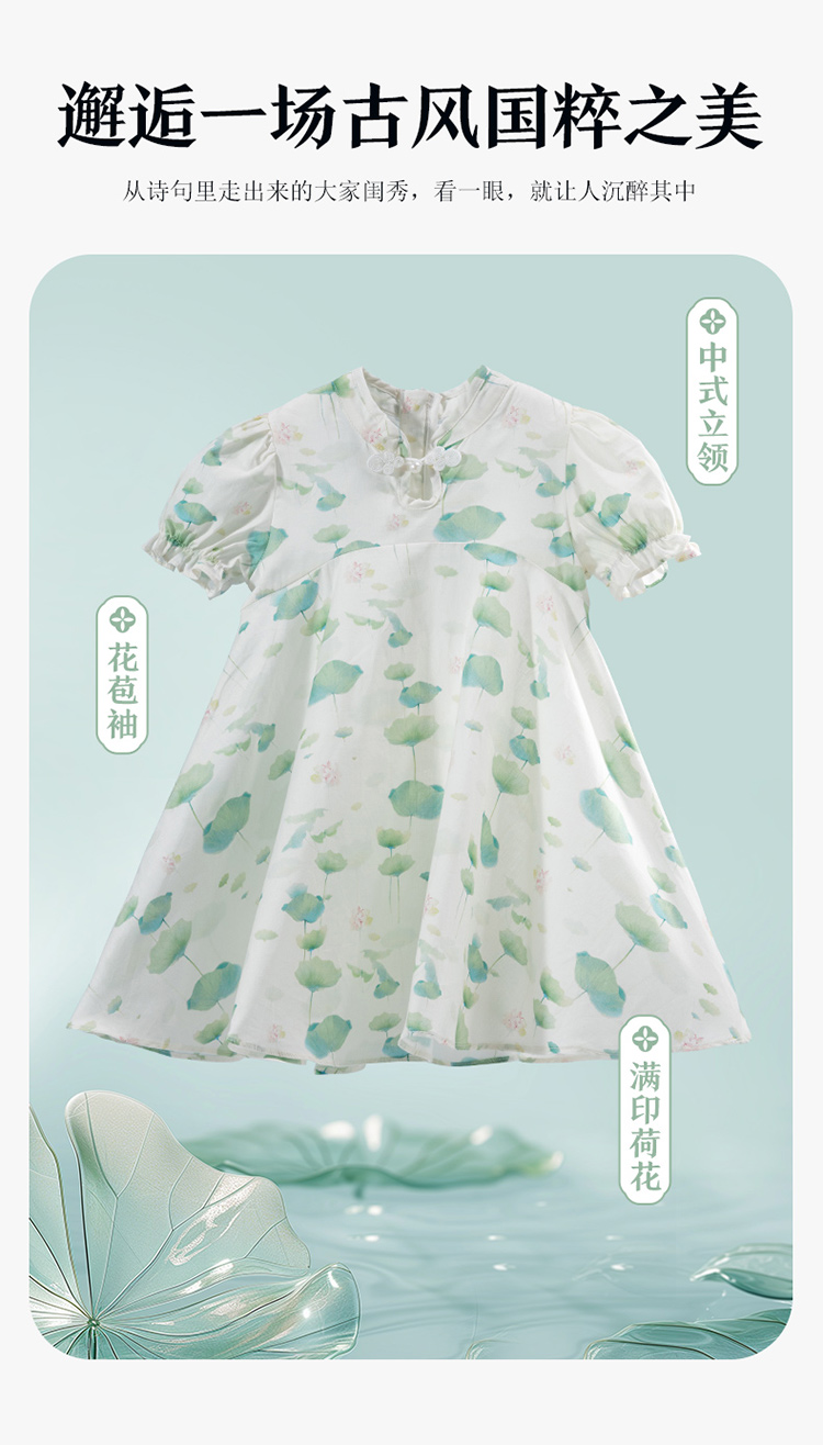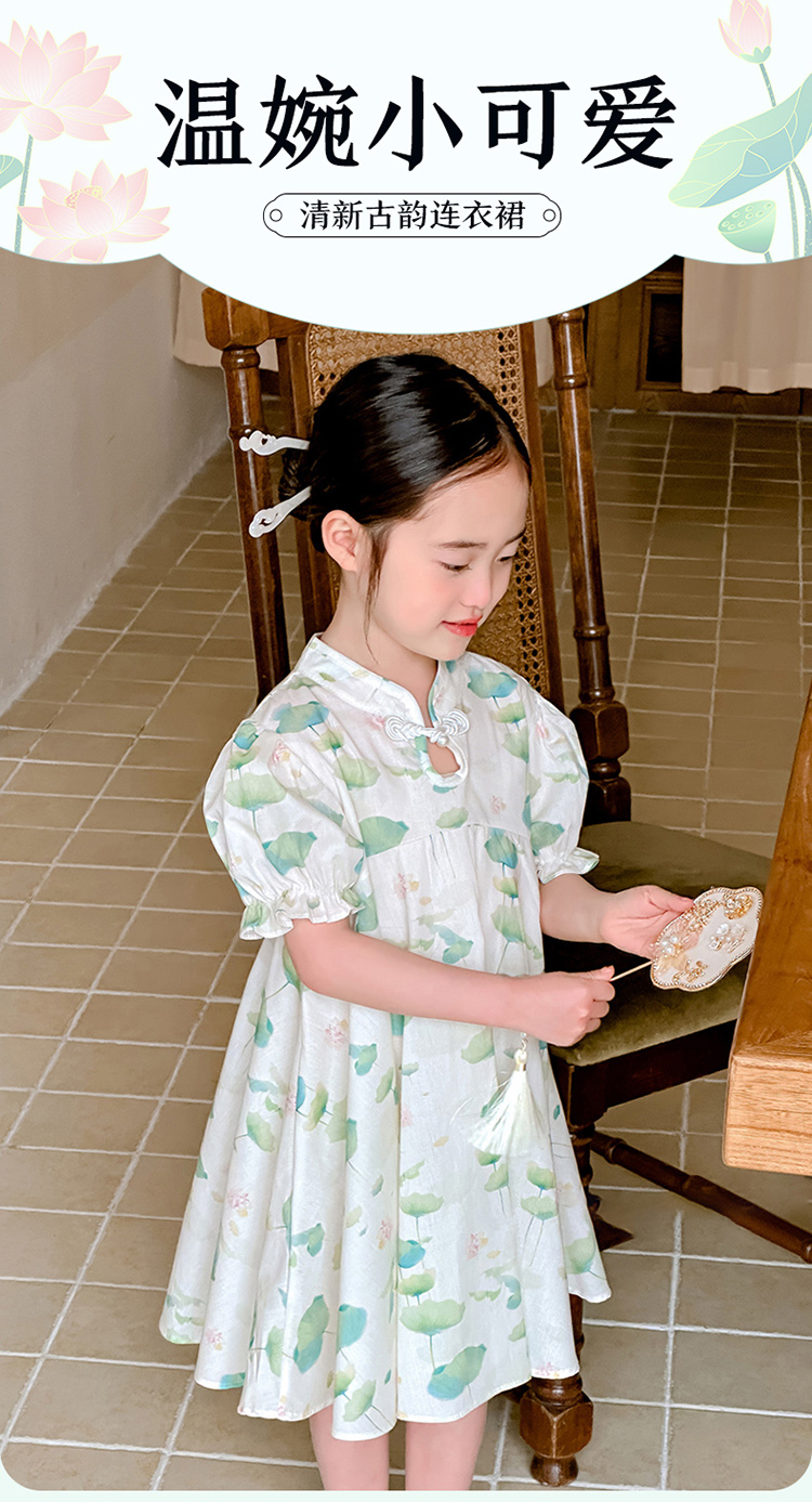 贝贝怡女童连衣裙2024新款夏装新中式国风旗袍洋气公主裙子夏季