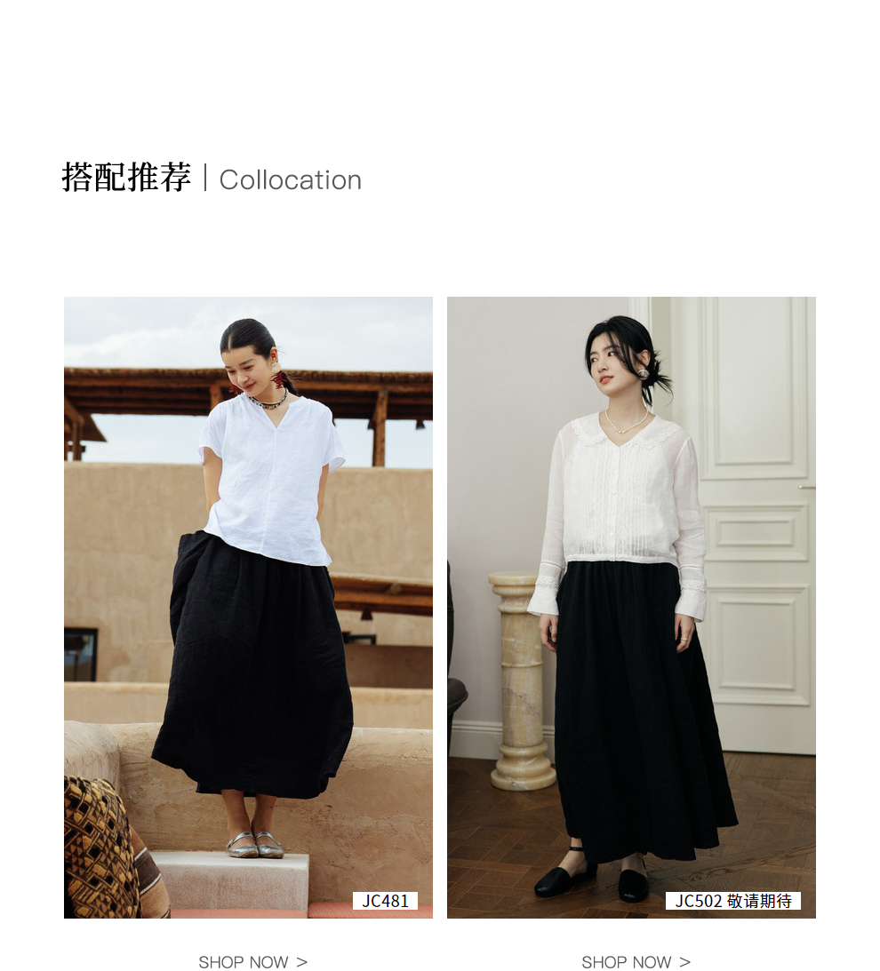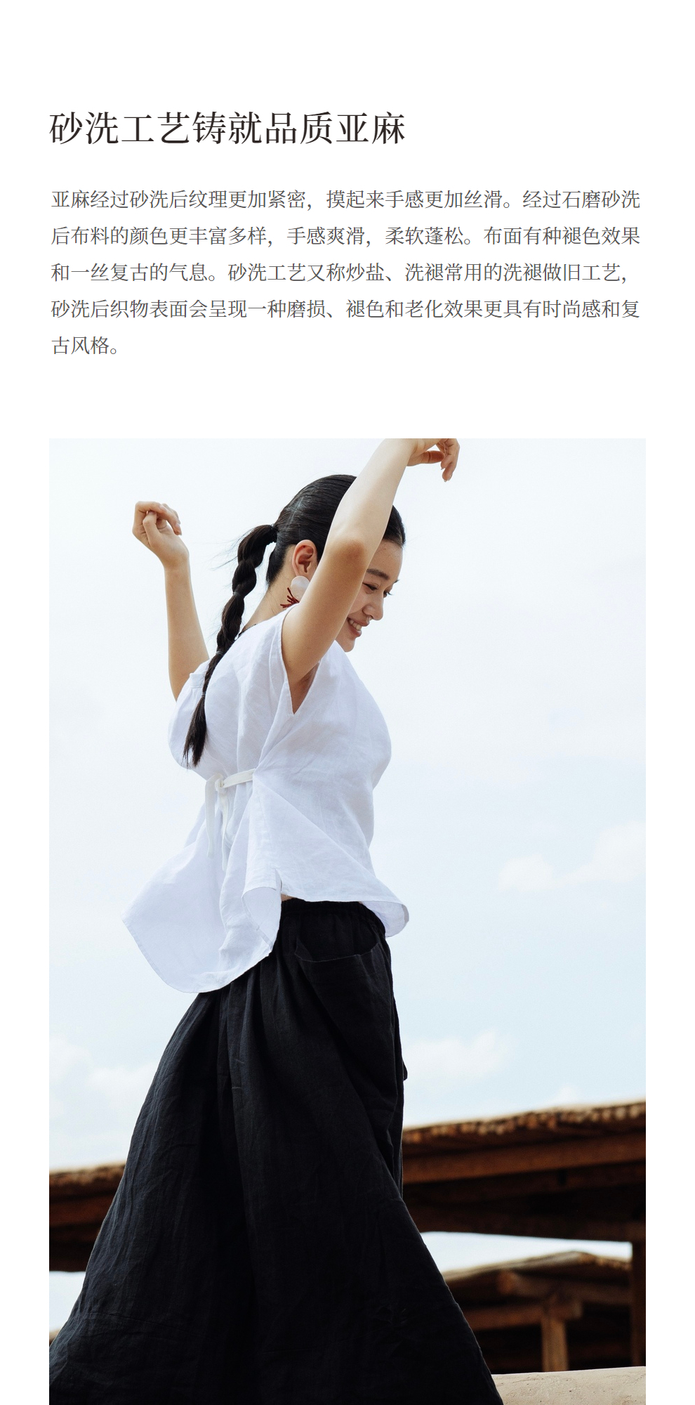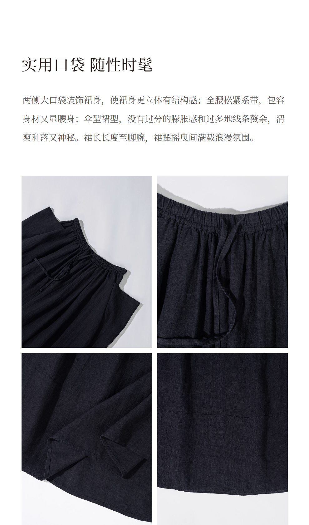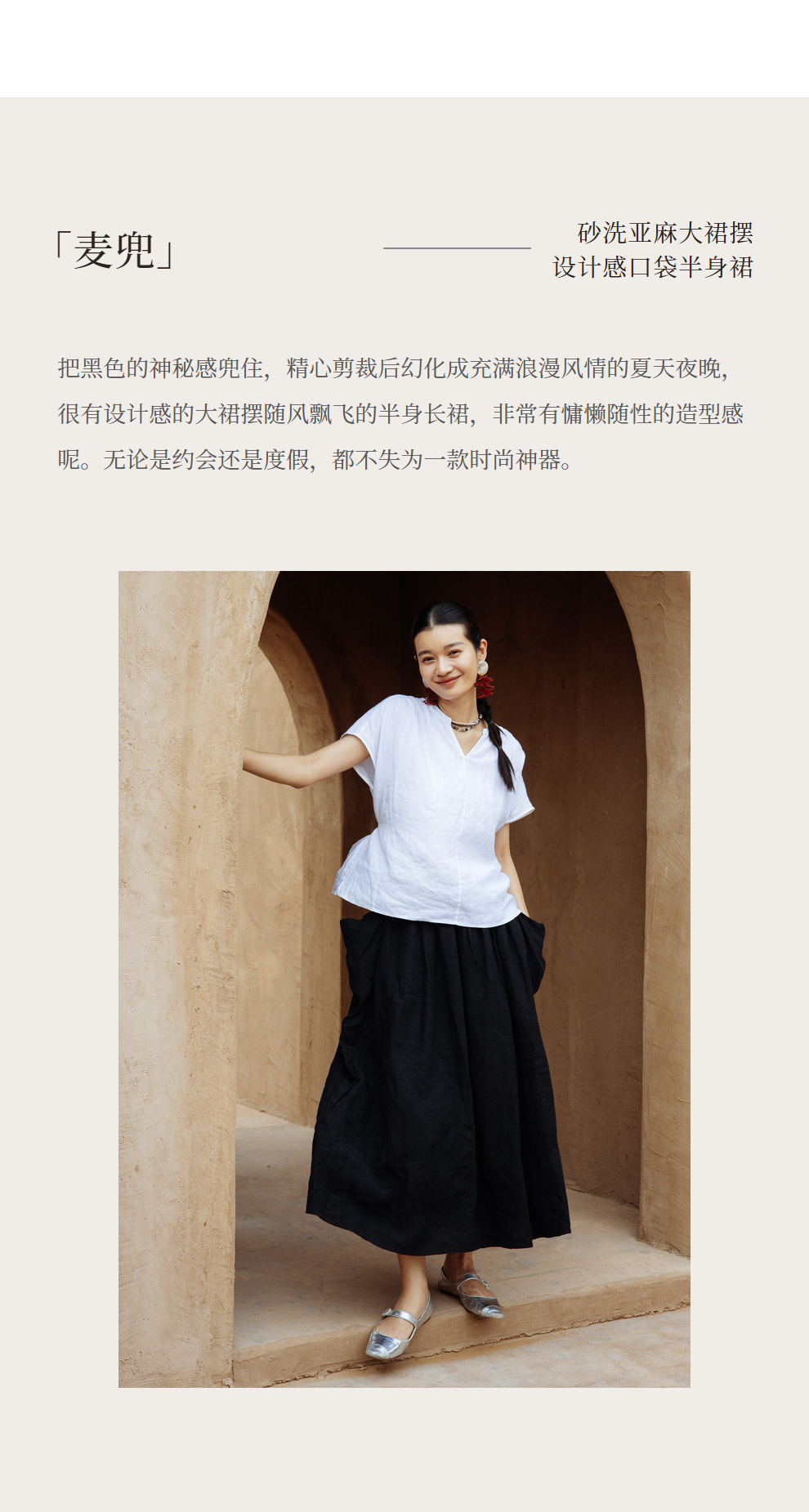 绽放463朵【黑白灰系列·麦兜】砂洗亚麻大裙摆设计感口袋半身裙