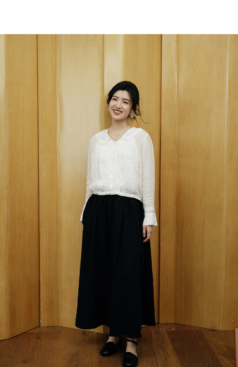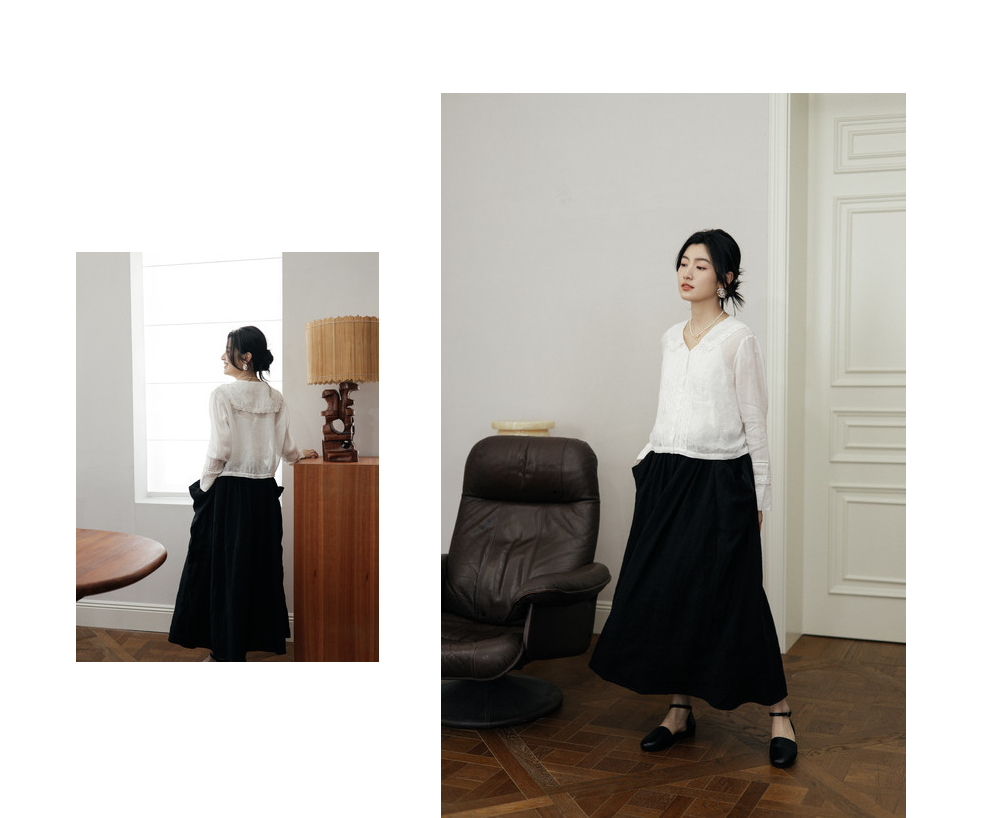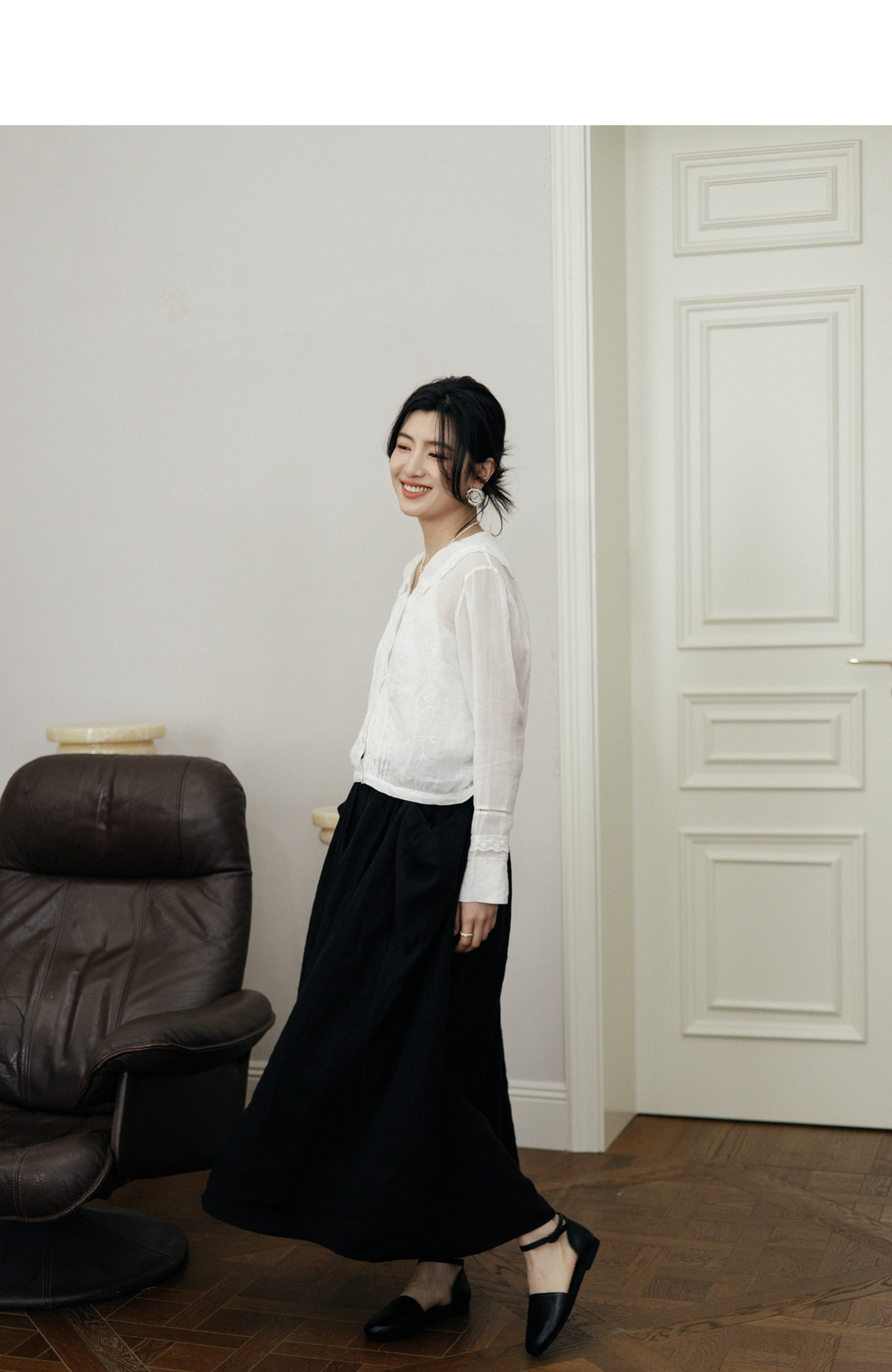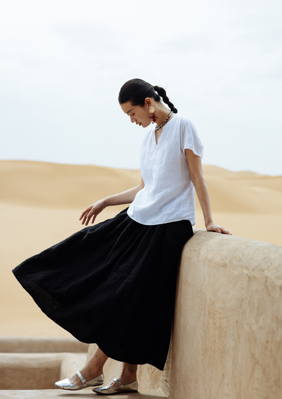 绽放463朵【黑白灰系列·麦兜】砂洗亚麻大裙摆设计感口袋半身裙