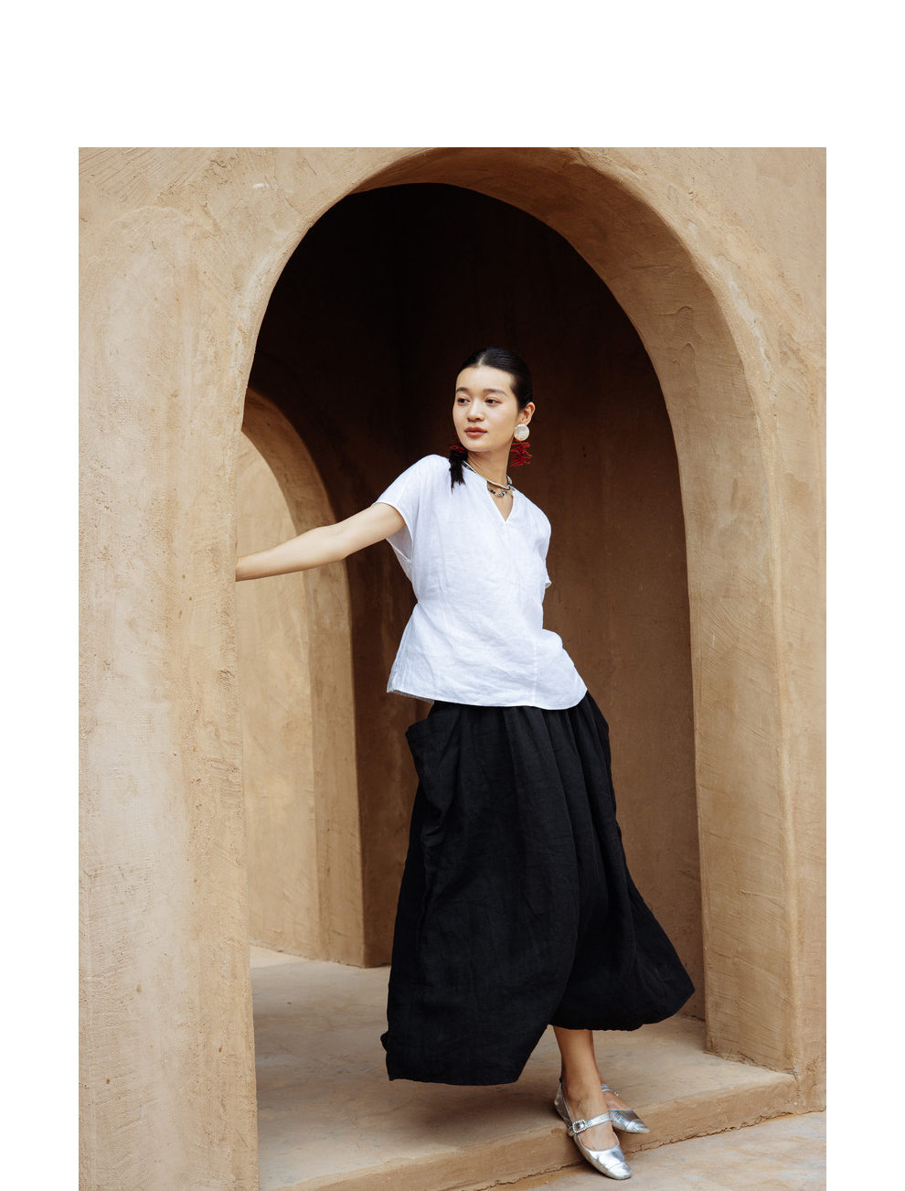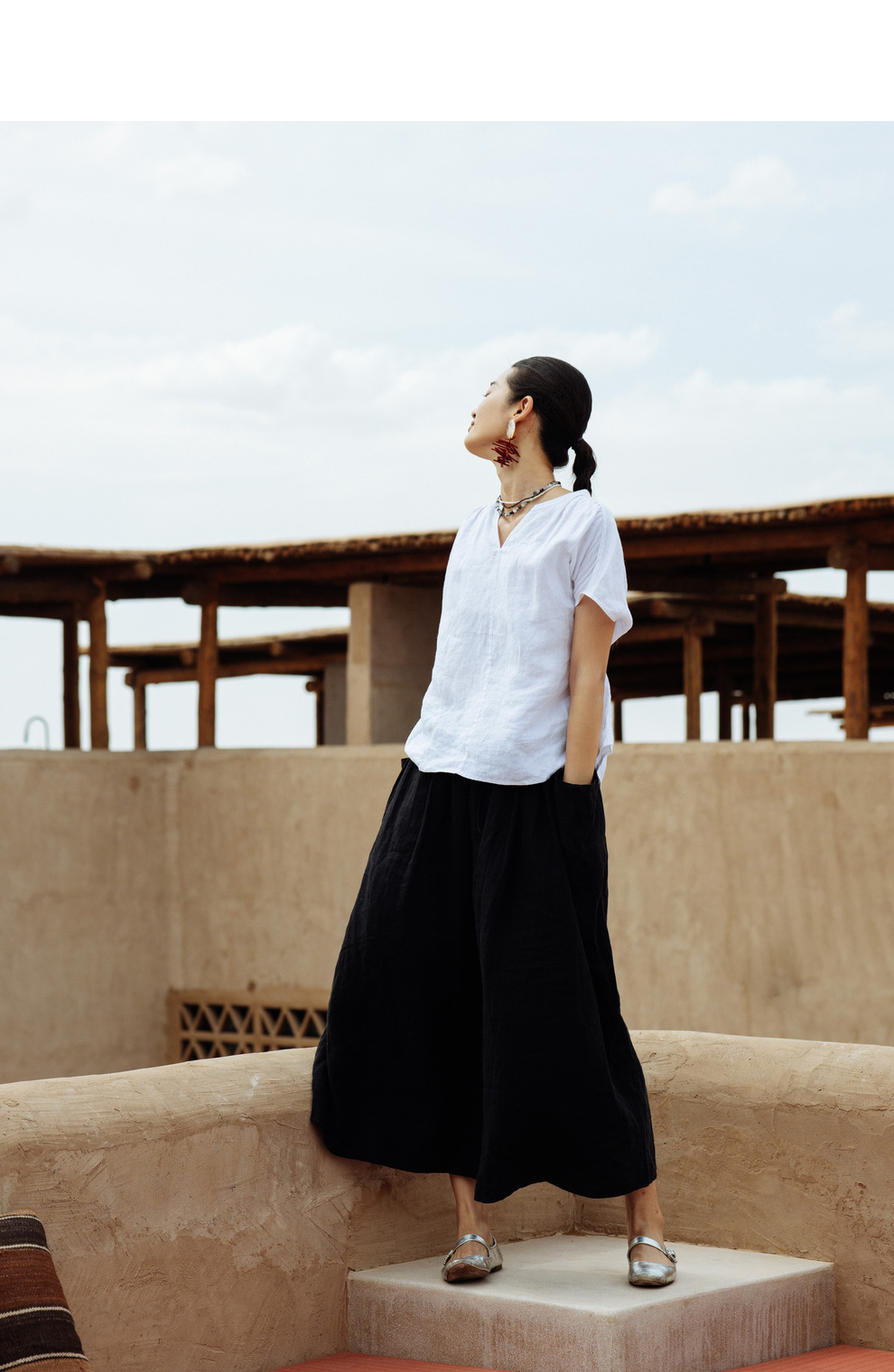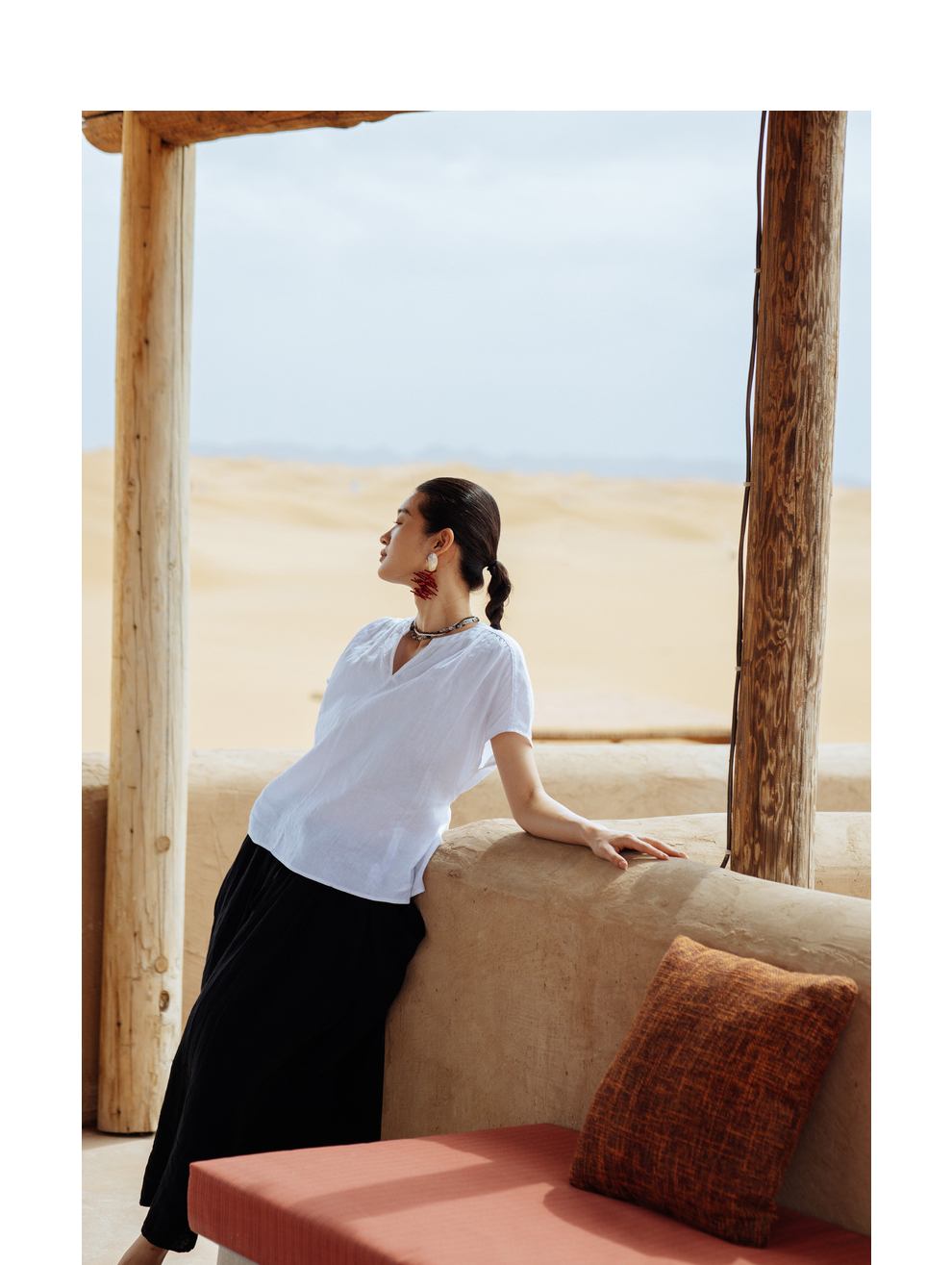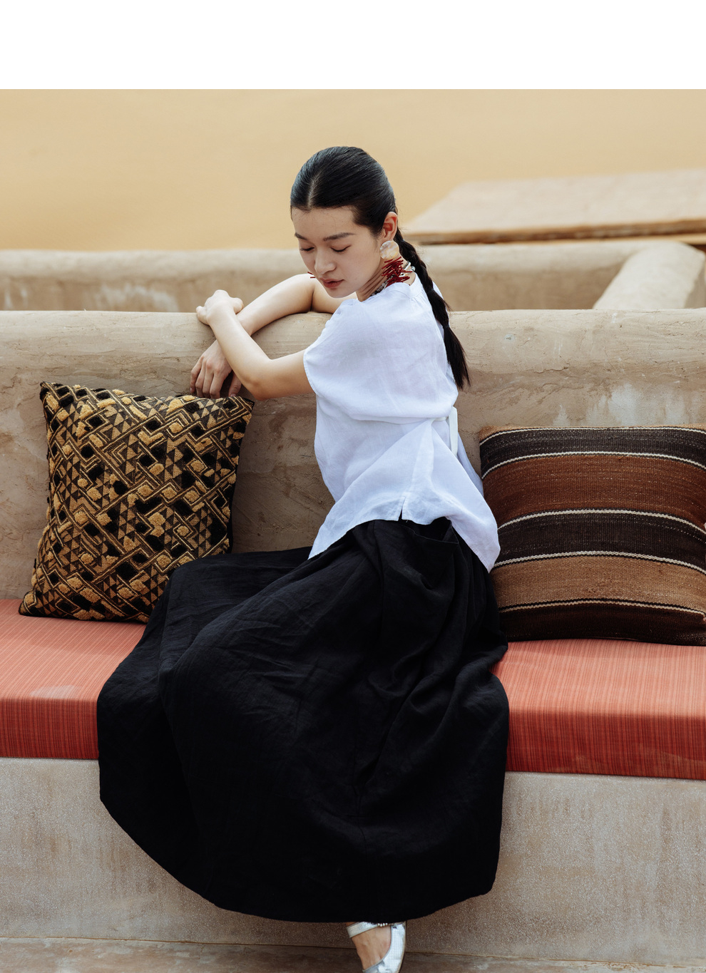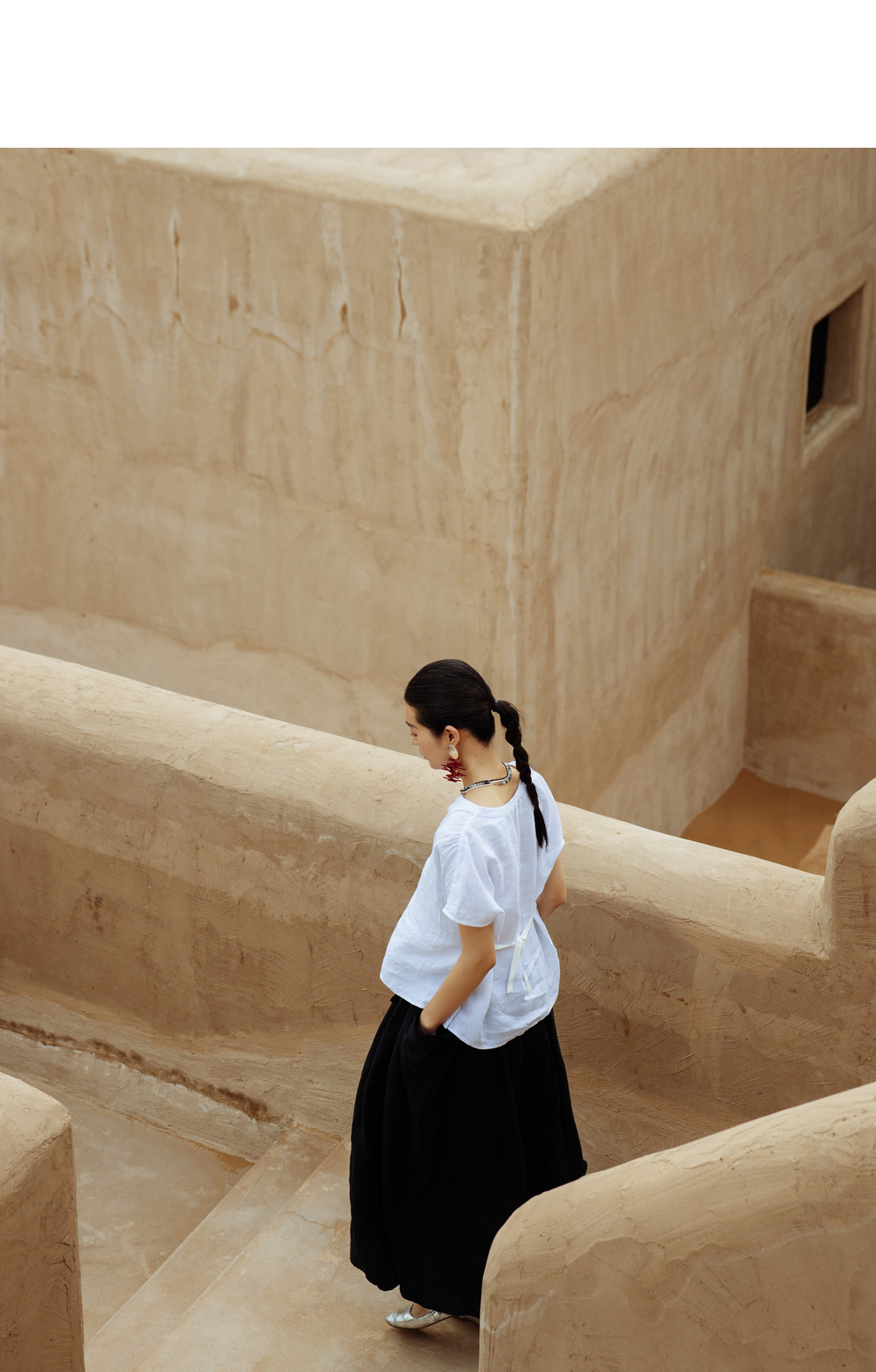 以天然亚麻为载体,融合热烈色彩与自在剪裁为身在城市、心怀远方的女性提供兼具美学与舒适的旅行着装