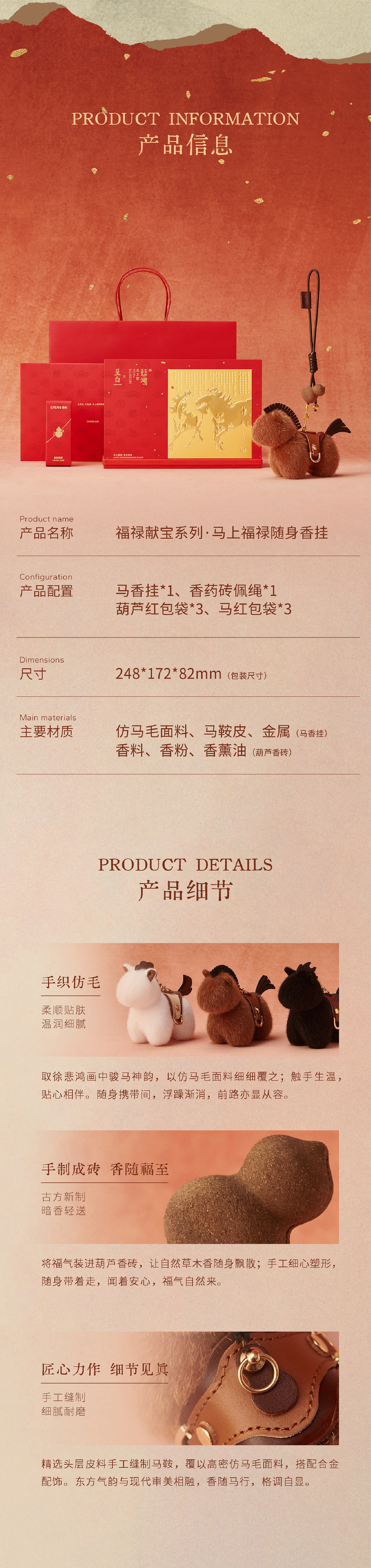 马上福禄·随身香挂礼盒,呈白×徐悲鸿美术馆联名