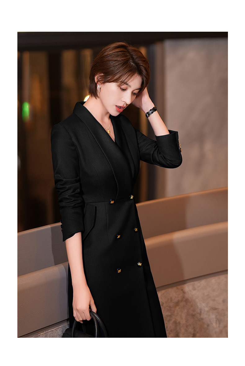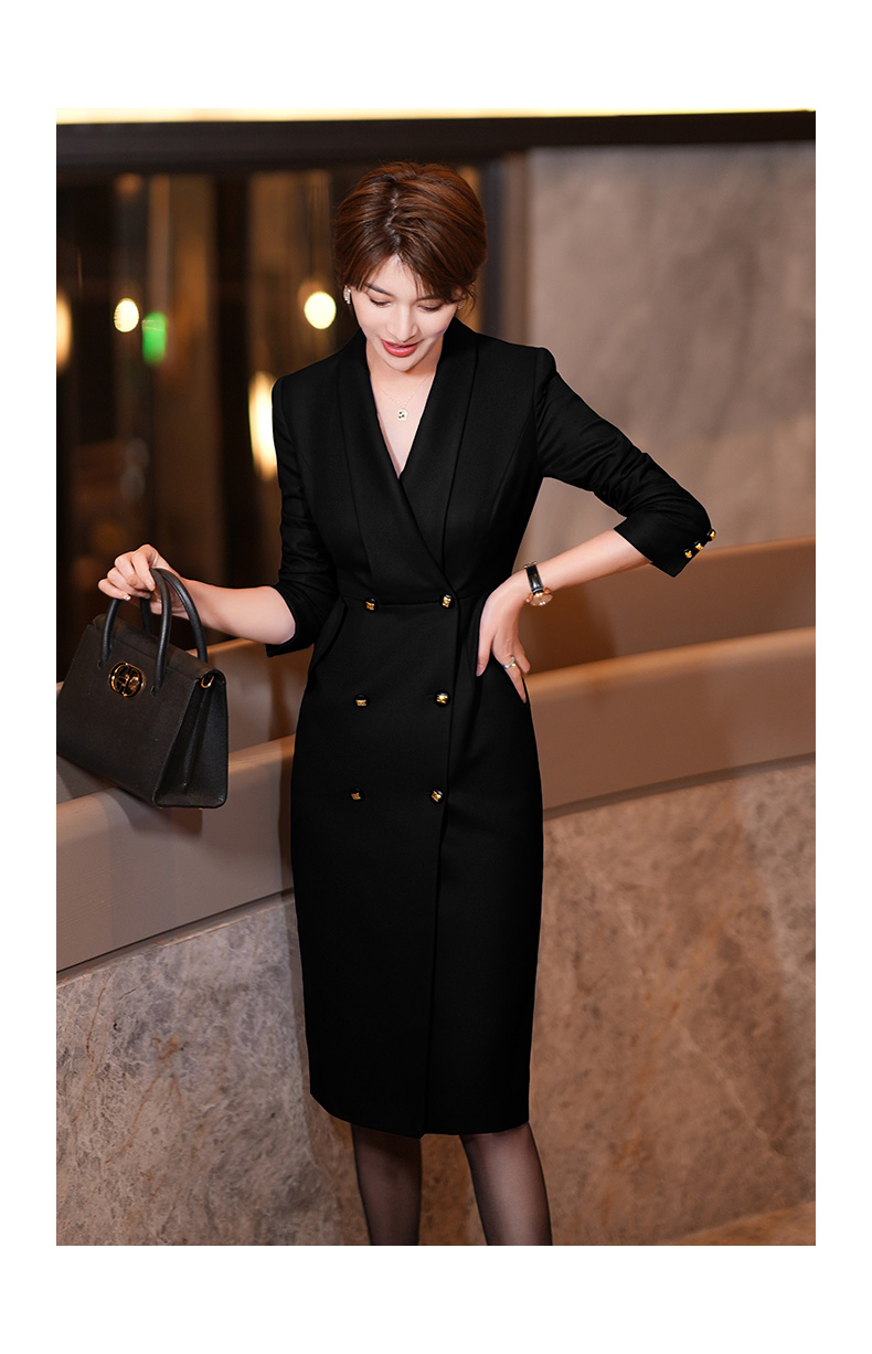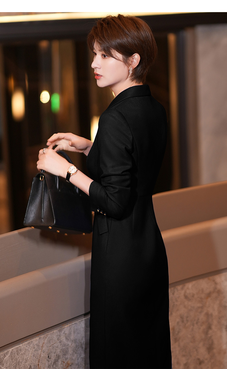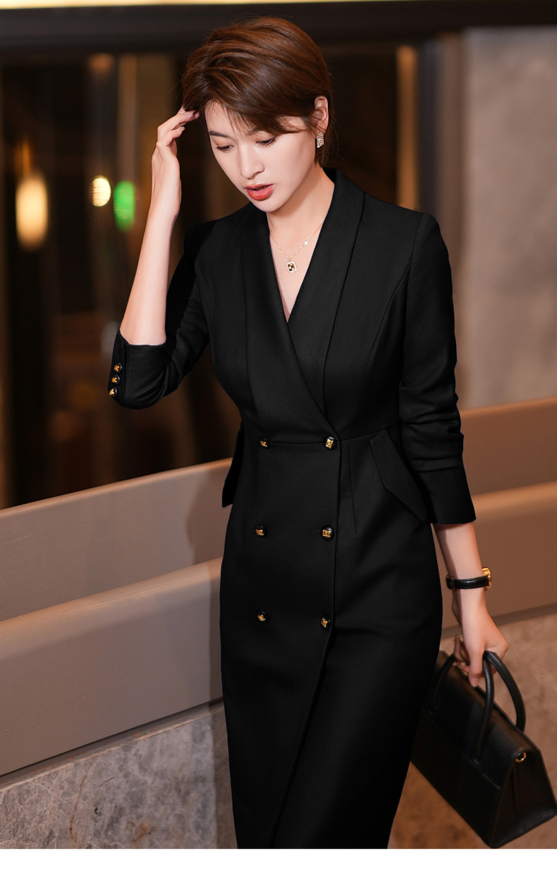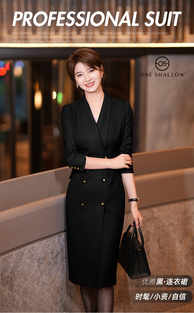 黑色西装连衣裙女秋冬新款气质通勤职业装修身中长裙
