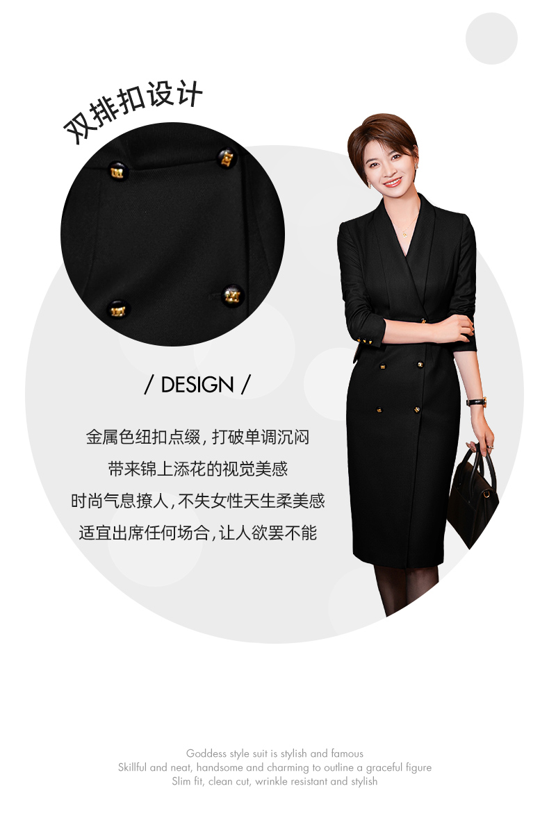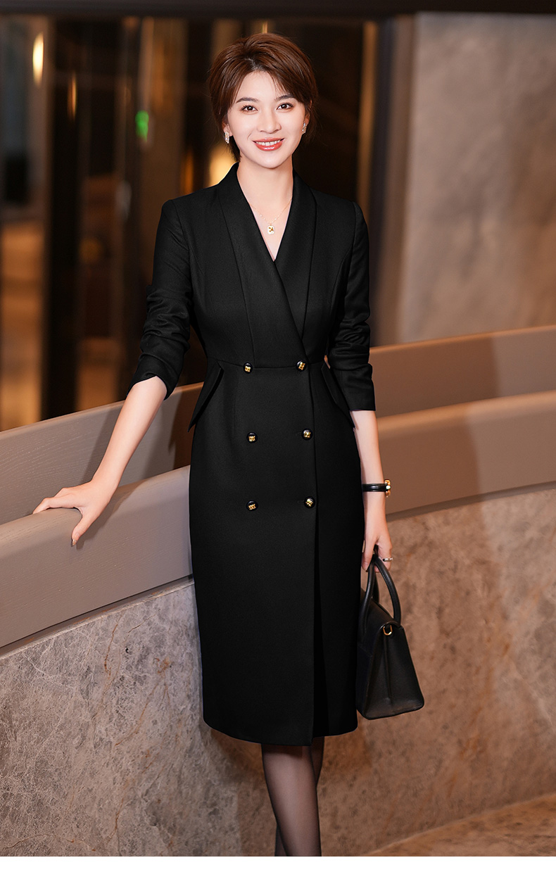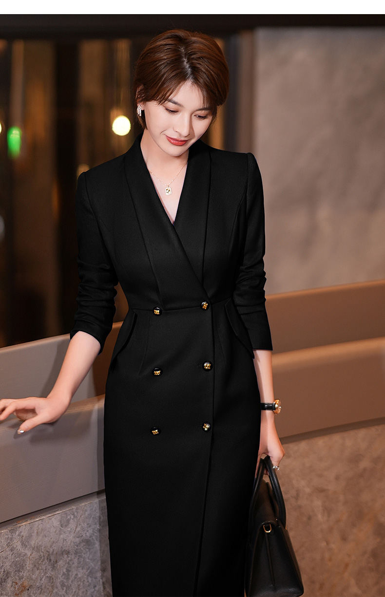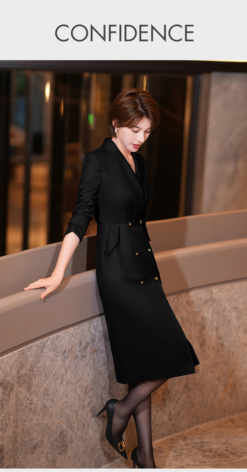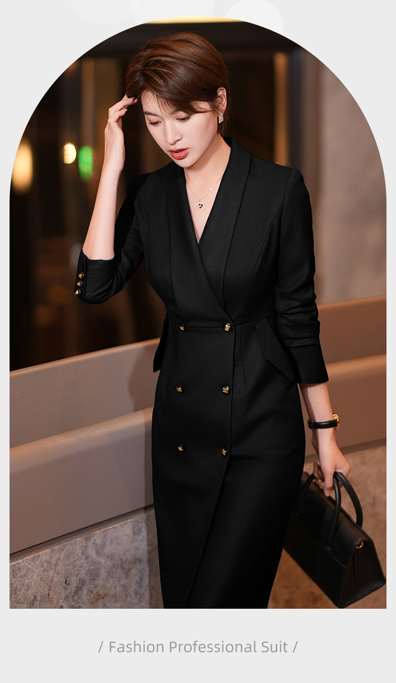 黑色西装连衣裙女秋冬新款气质通勤职业装修身中长裙