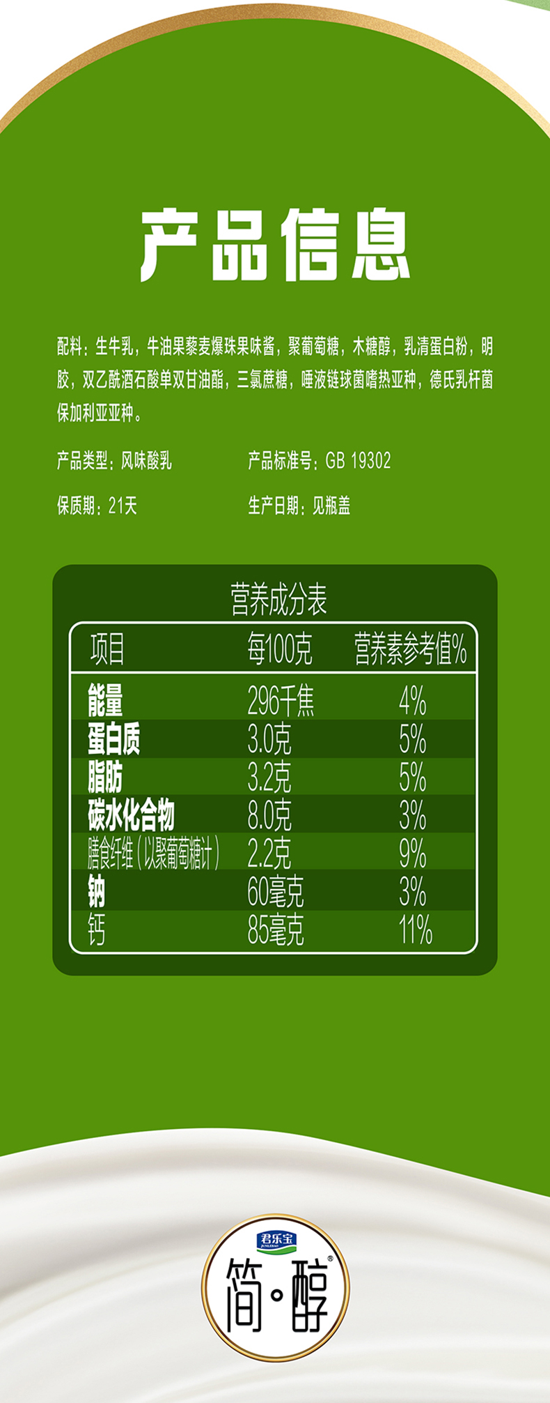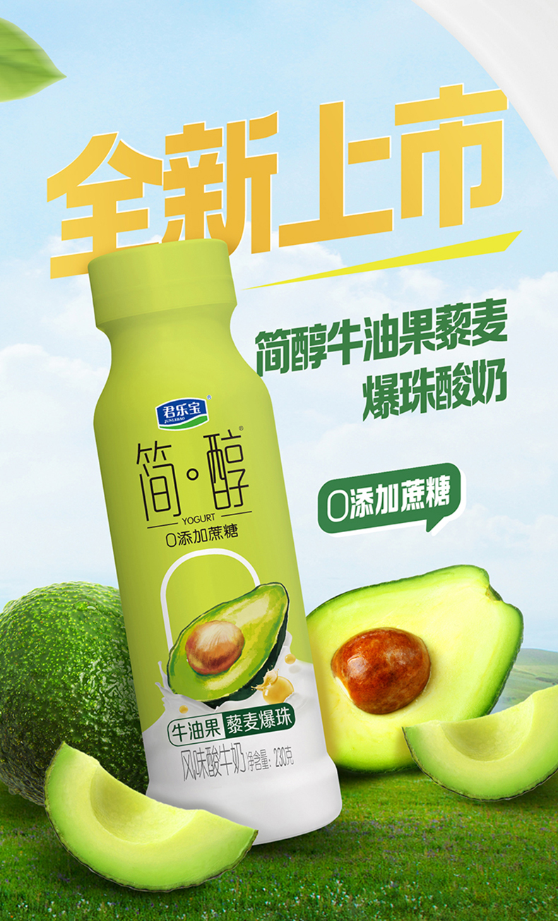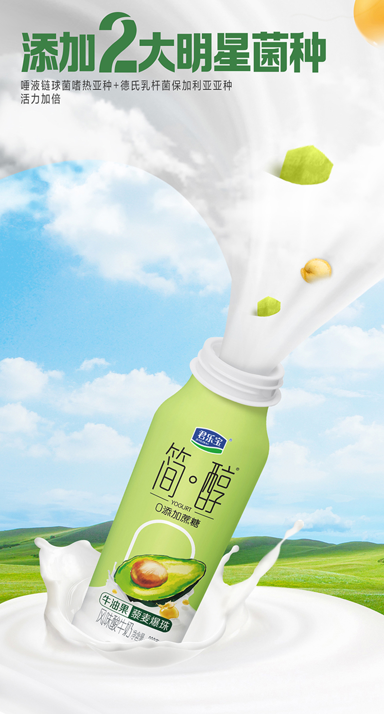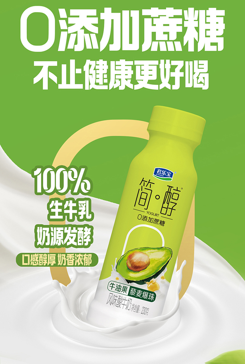 君乐宝简醇酸奶0添加蔗糖牛油果藜麦爆珠风味酸牛奶230g(包装随机)