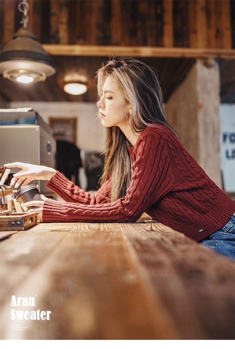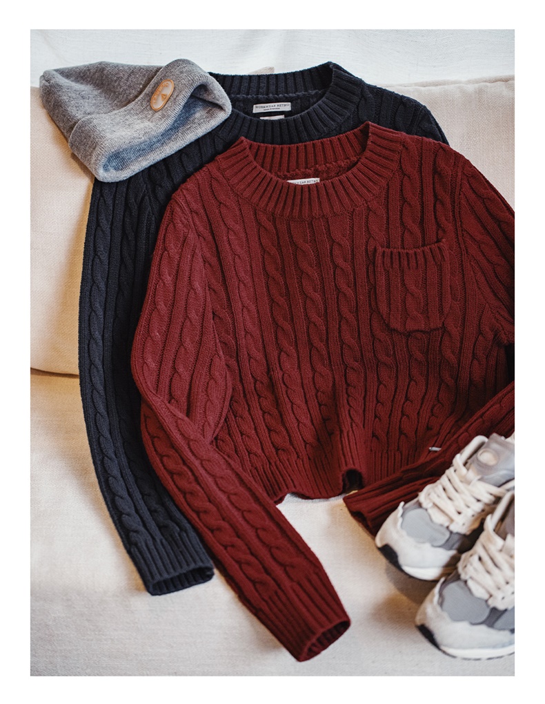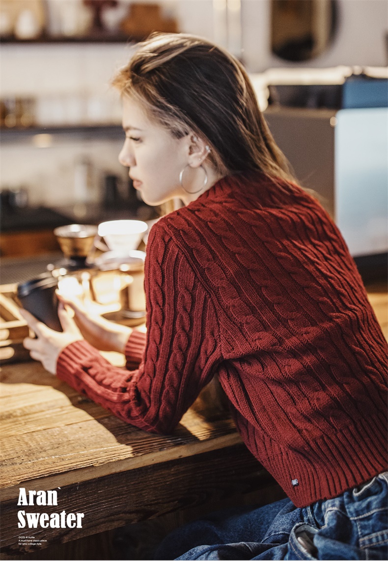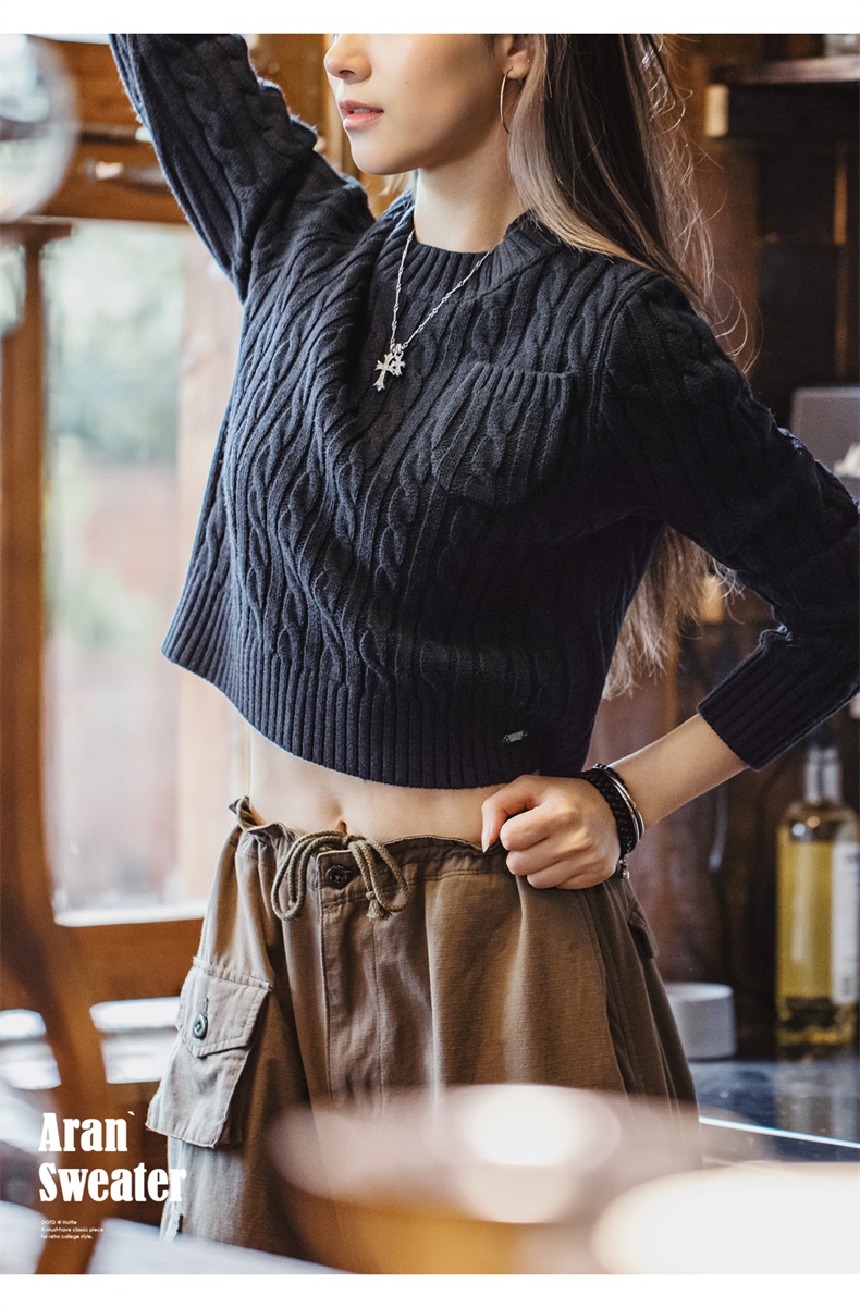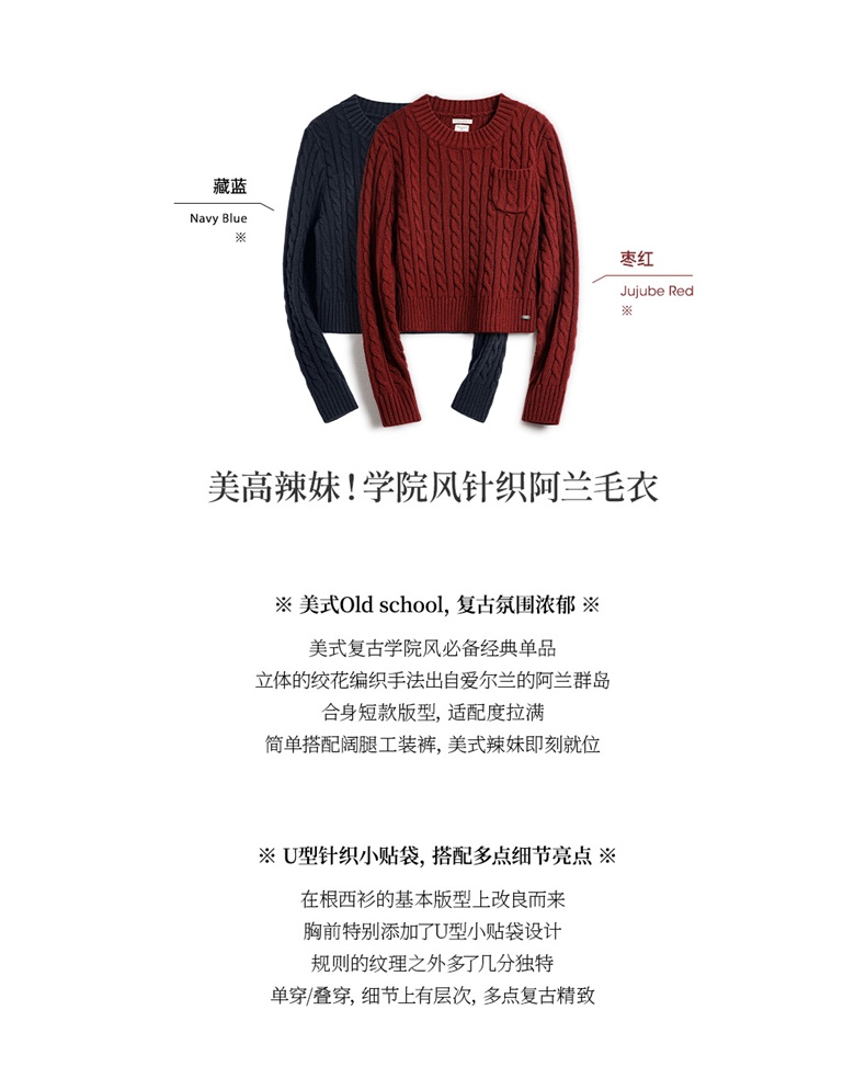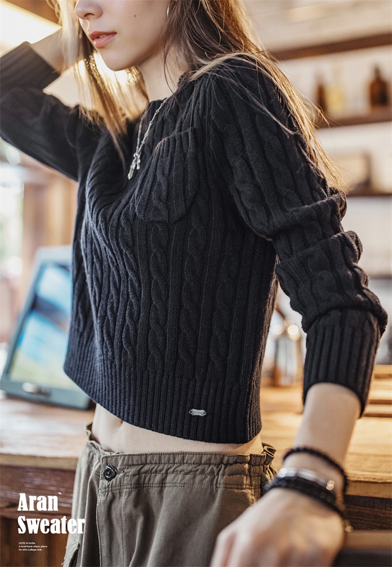 马登美式复古套头针织加厚圣诞毛衣学院风短款针织衫秋冬上衣女