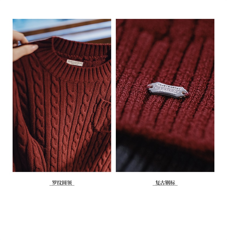 工装优选 美式休闲雪尼尔圆领毛衣保暖慵懒基础打底针织衫男秋冬