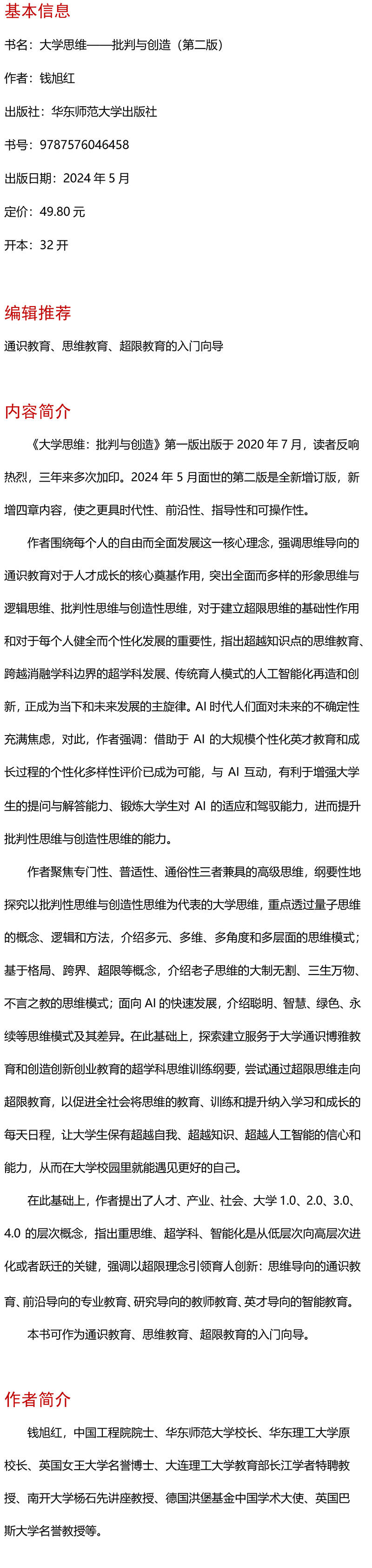 大学思维 批判与创造 第二版 钱旭红 新增订
