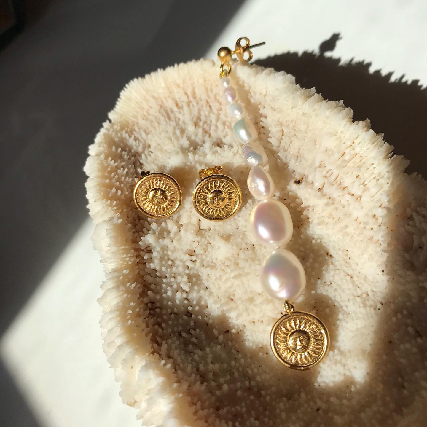 订购7周到|Barbóra-Sunlight-太阳金币 珍珠 耳环[希腊设计师]