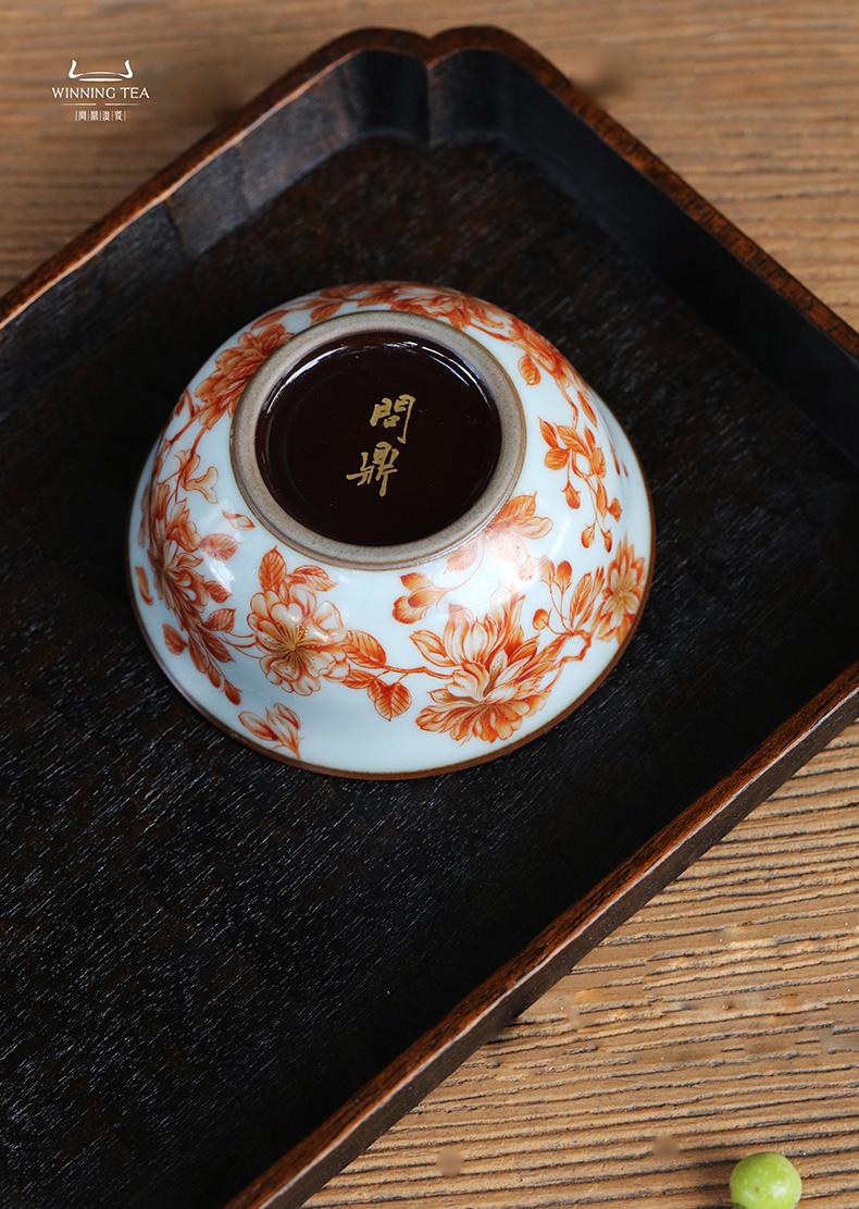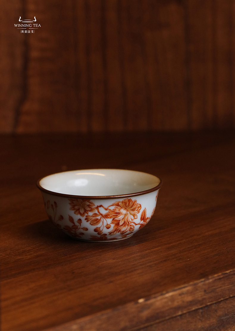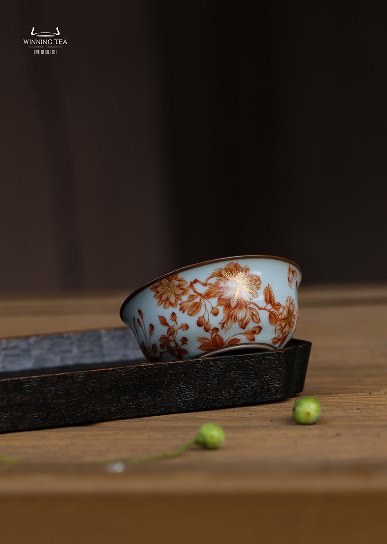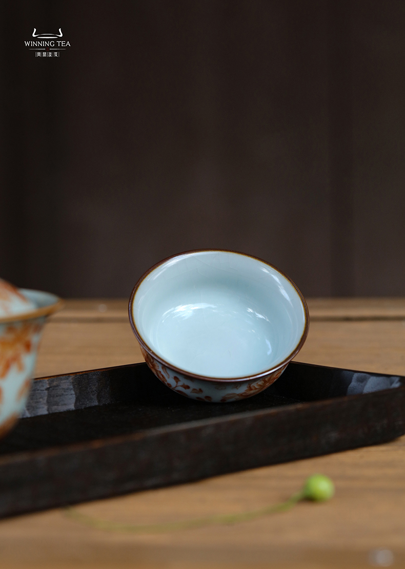 问鼎汝瓷鼎峰系列月白老款品茗杯 (梵红樱花)