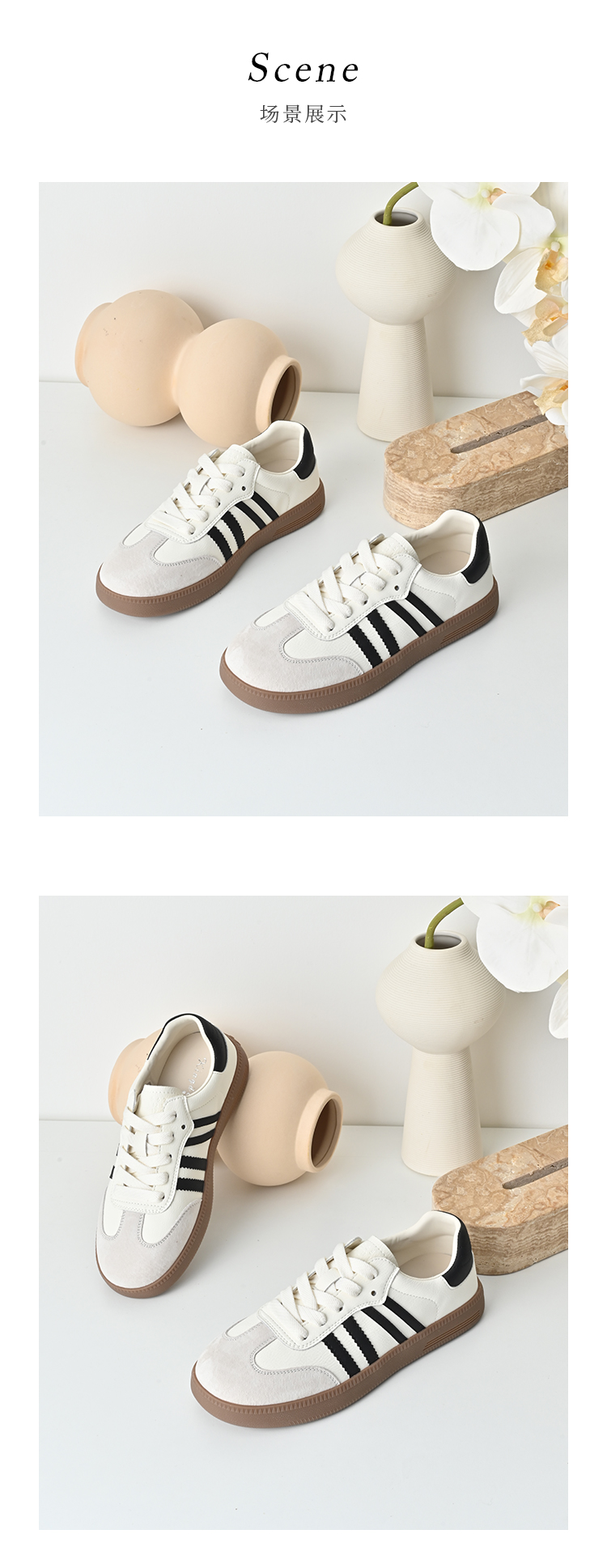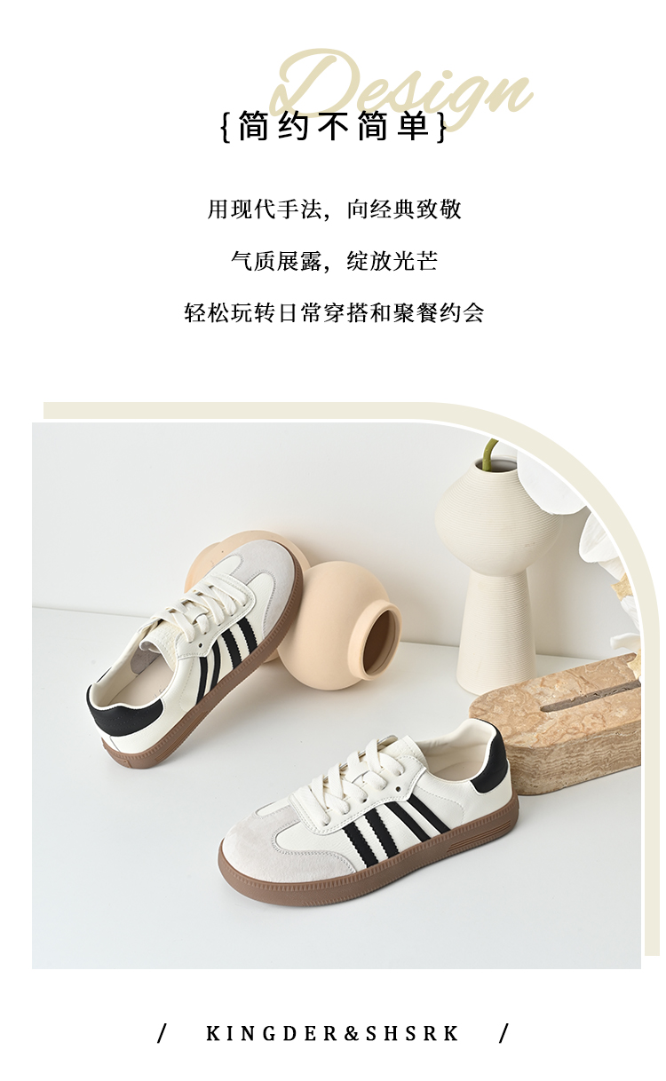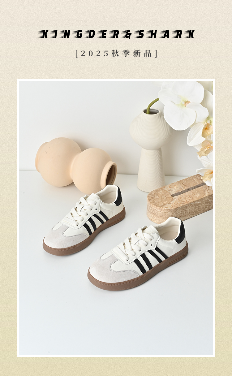 经典鲨2025年秋专柜新款韩版潮流时尚拼色平底休闲德训鞋女KW313-537111