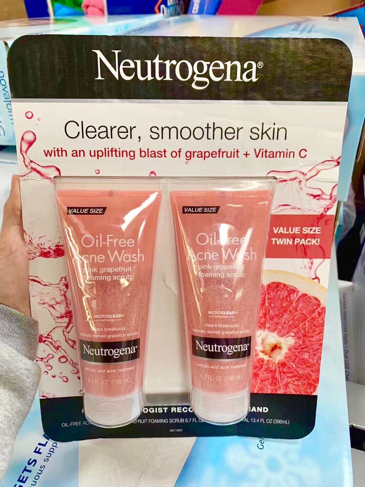 新品❤Neutrogena露得清🍇葡萄柚泡沫柔砂祛痘洁面乳洗面奶❗❗一套包含198ml*2支,水杨酸成分能够深层清洁毛孔,洁净皮肤,MicroClear technology经医学证明可以在痘痘刚生成的时候,携带抗痘成分深入痘痘根源消灭它。包含100%自然摄取的葡萄柚萃取物和维生素C葡萄柚和青瓜成分使皮肤舒缓,抑制红肿刺激~