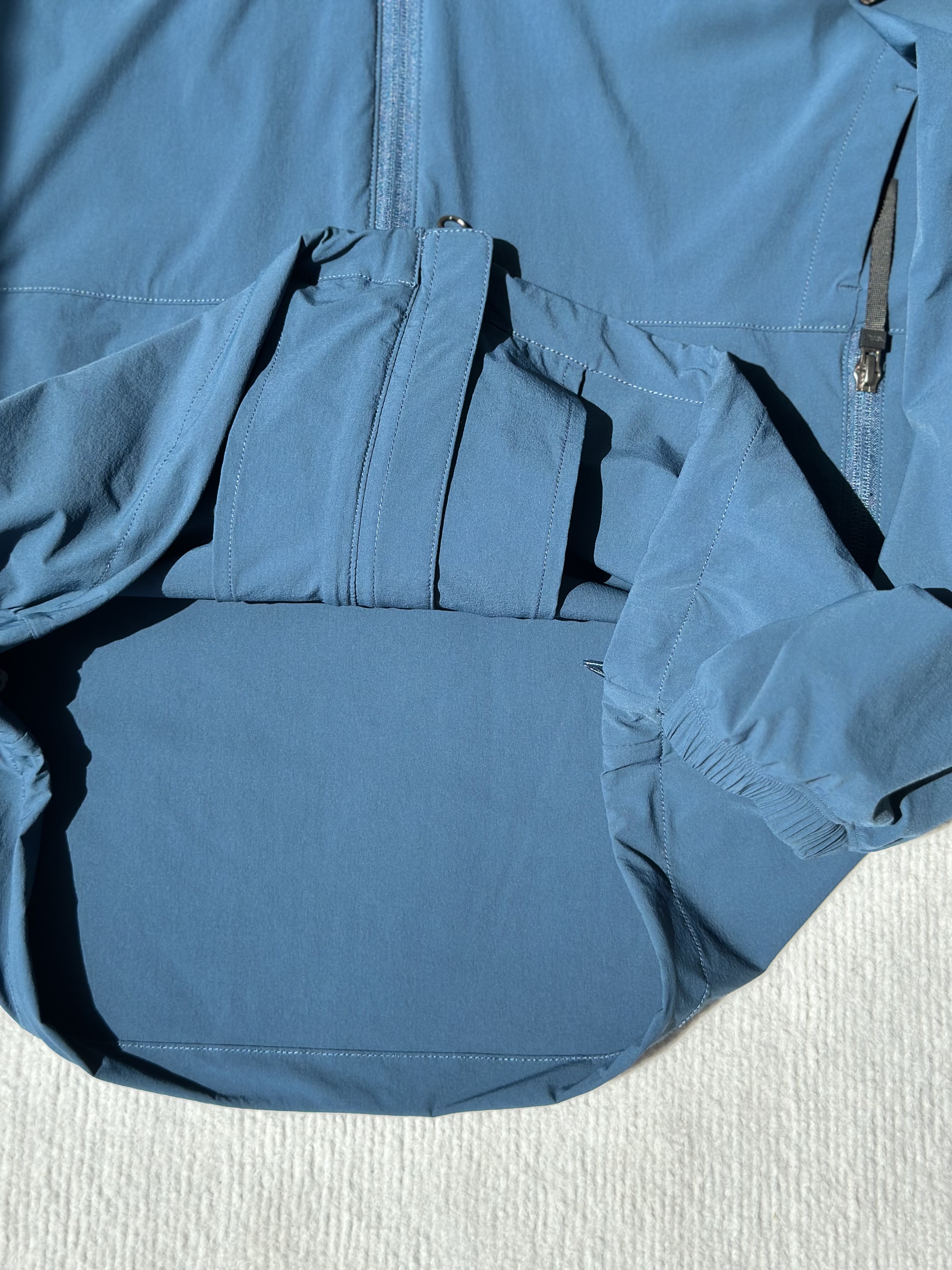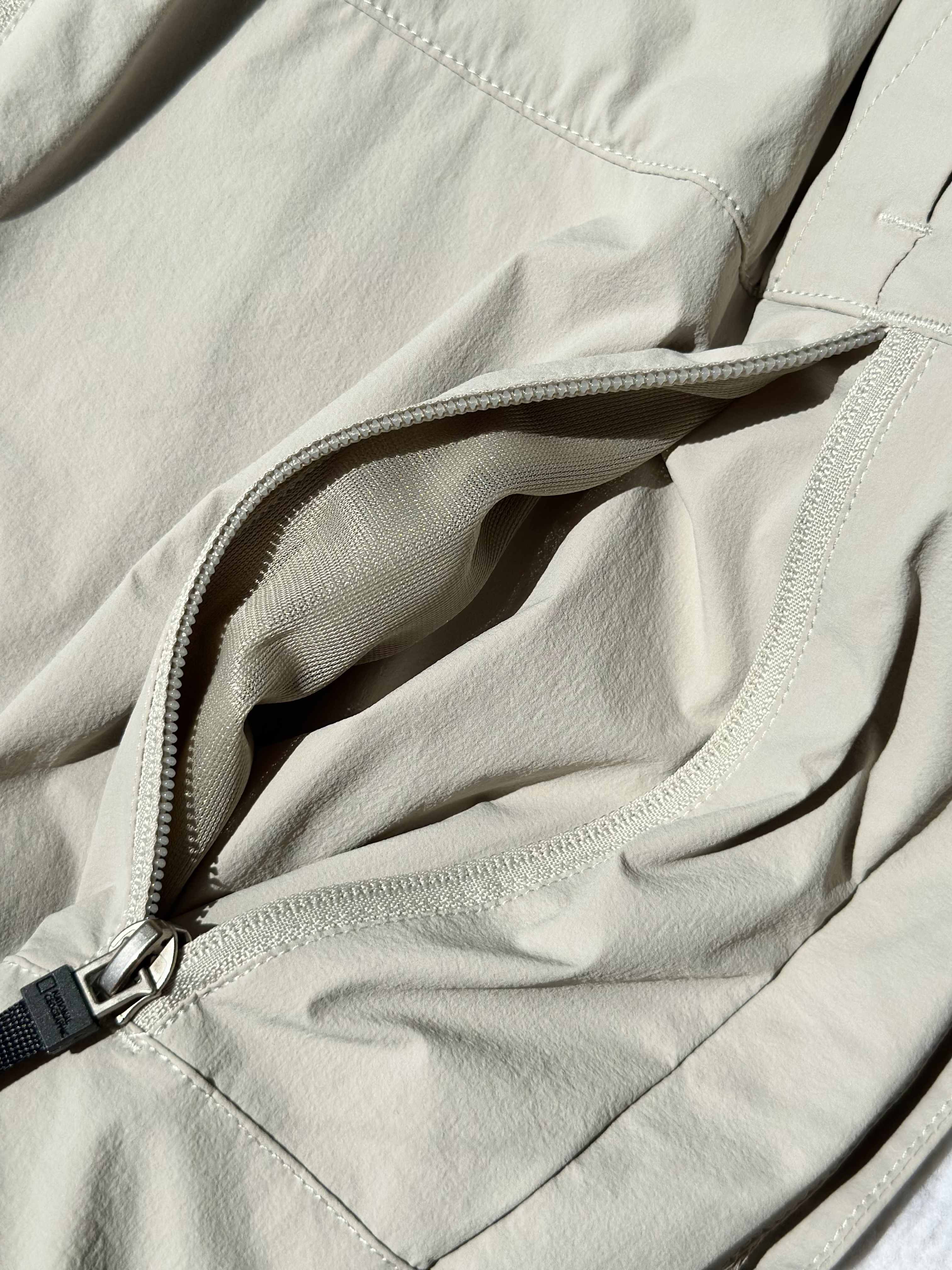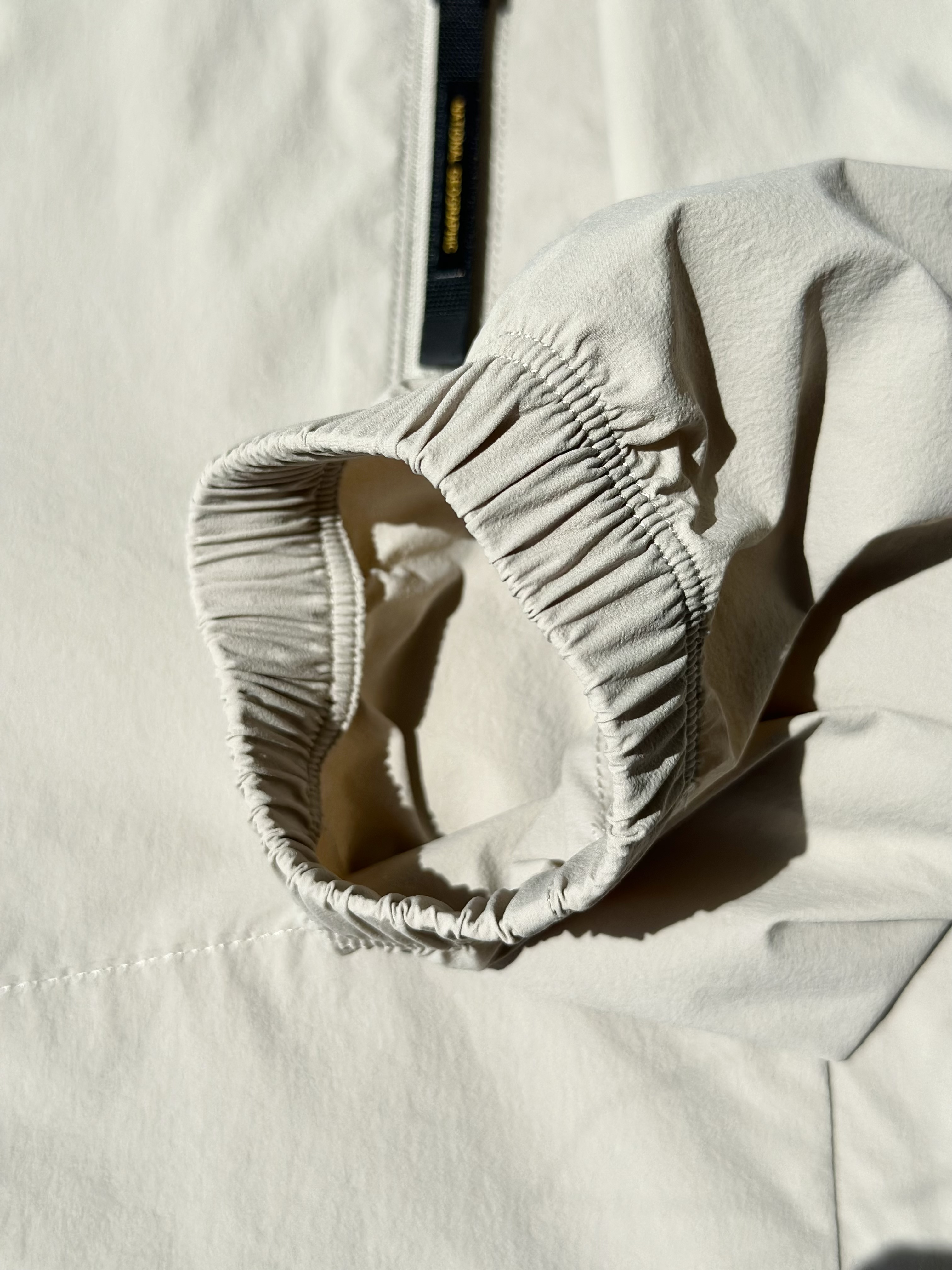 面料采用了可持续再生尼龙面料,同时还有upf50+的防晒左右 紫外线长波透过率小于5%,腋下后背前胸处都有透气设计;