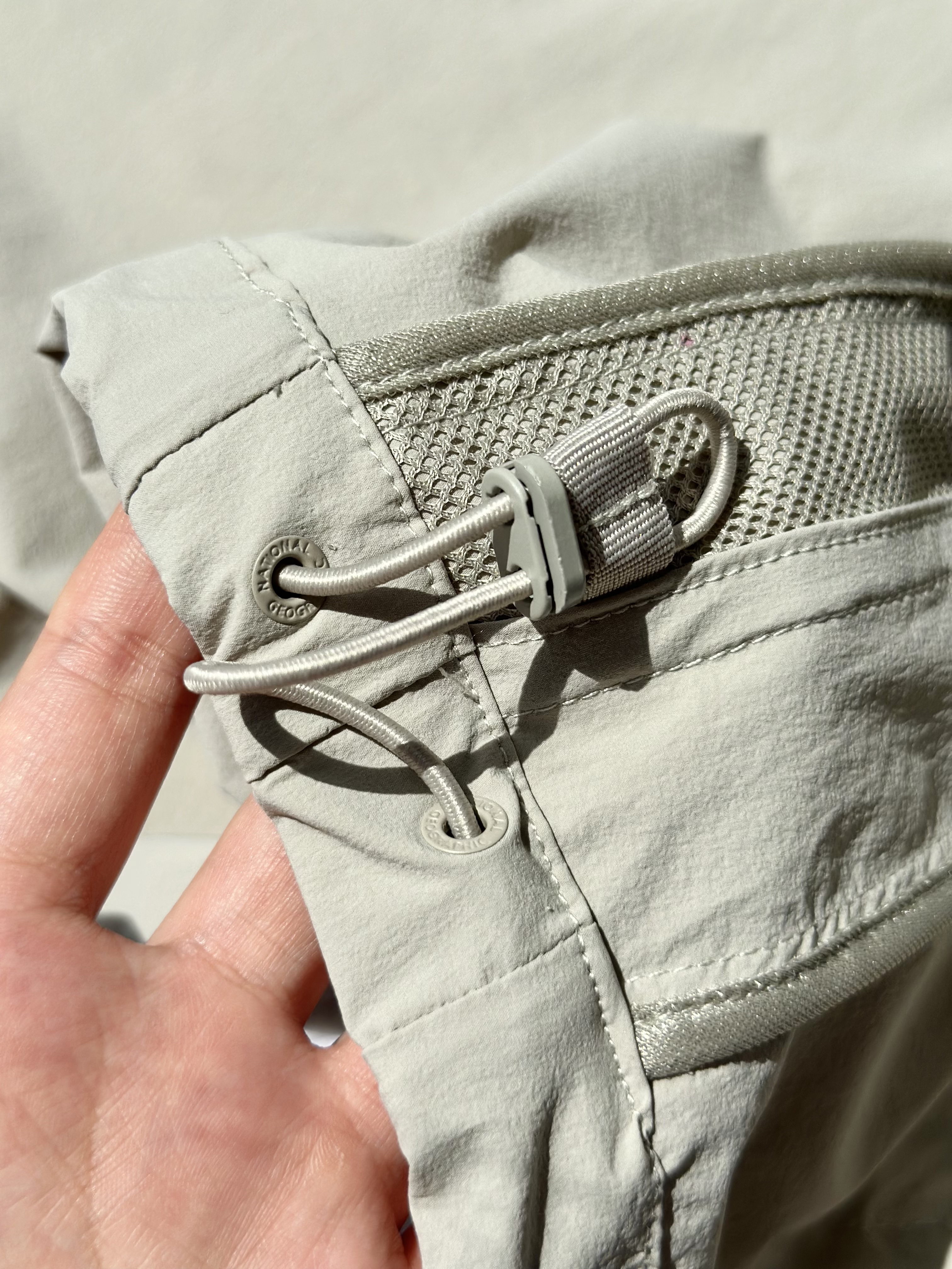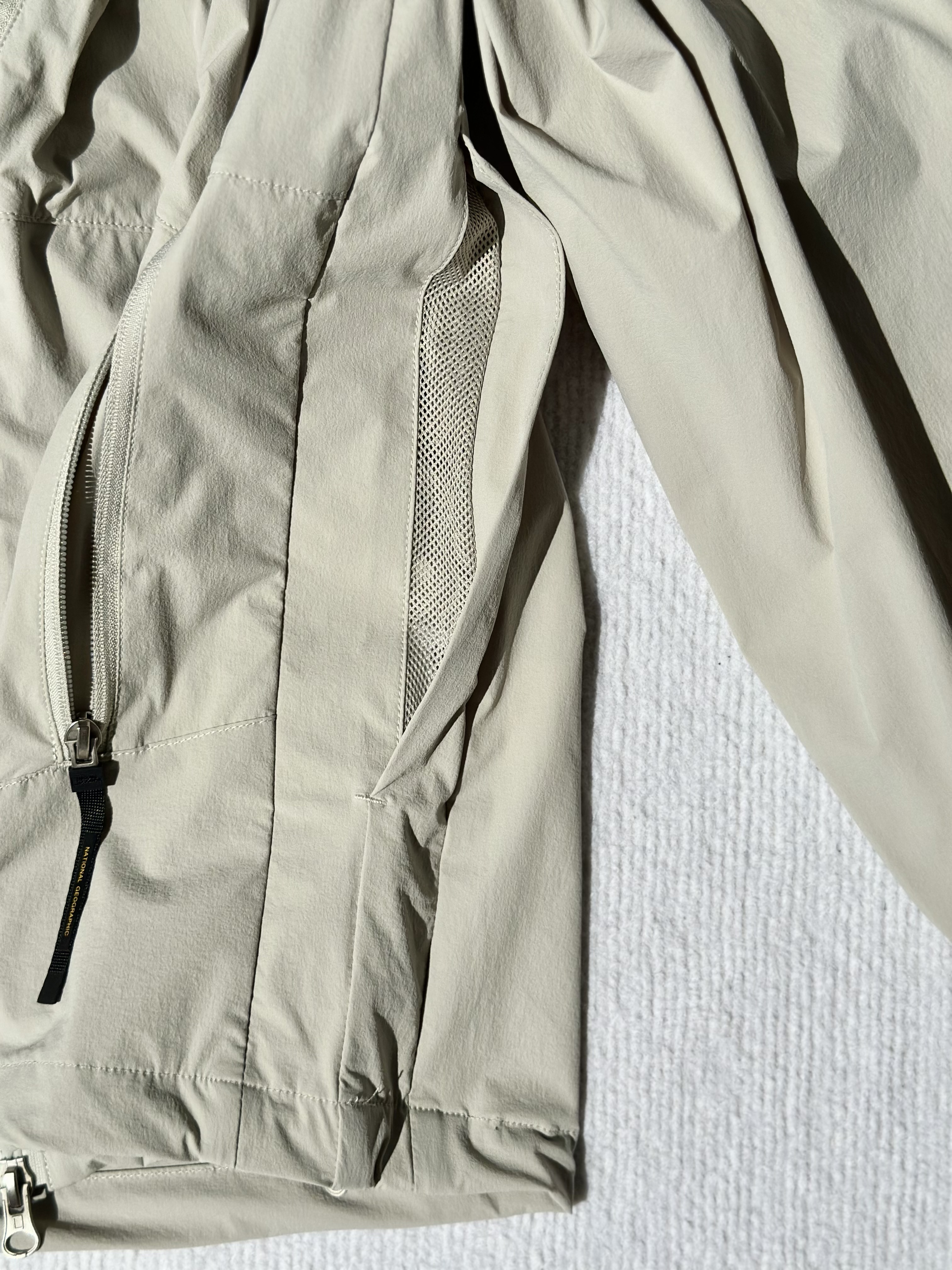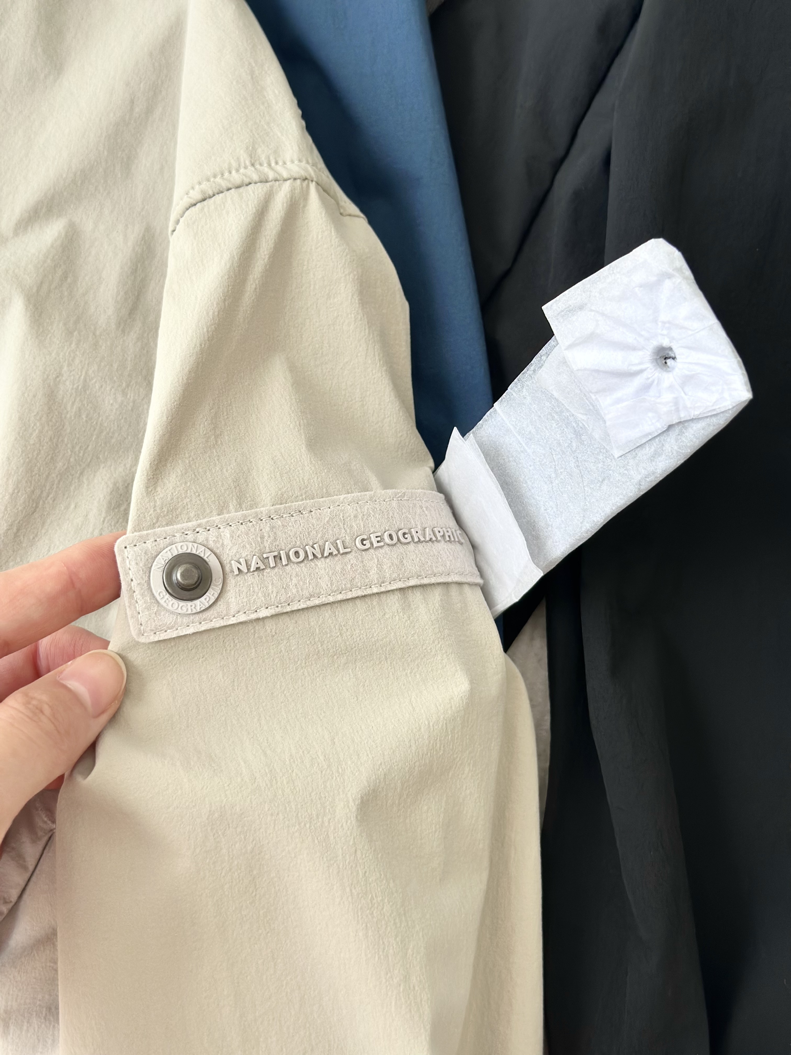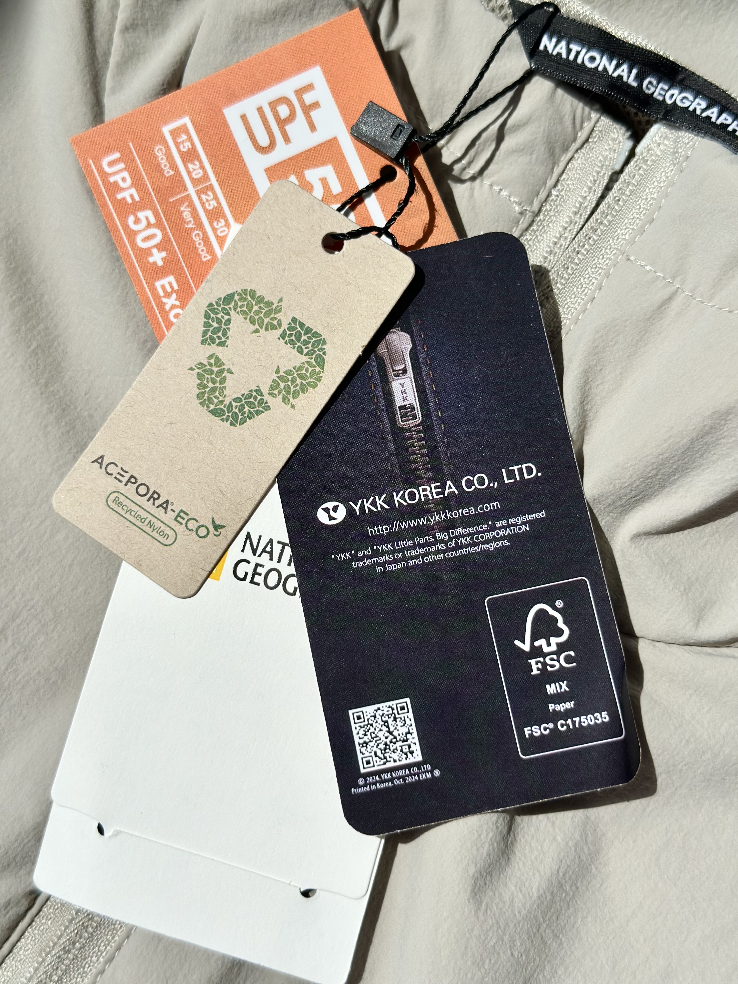 面料采用了可持续再生尼龙面料,同时还有upf50+的防晒左右 紫外线长波透过率小于5%,腋下后背前胸处都有透气设计;