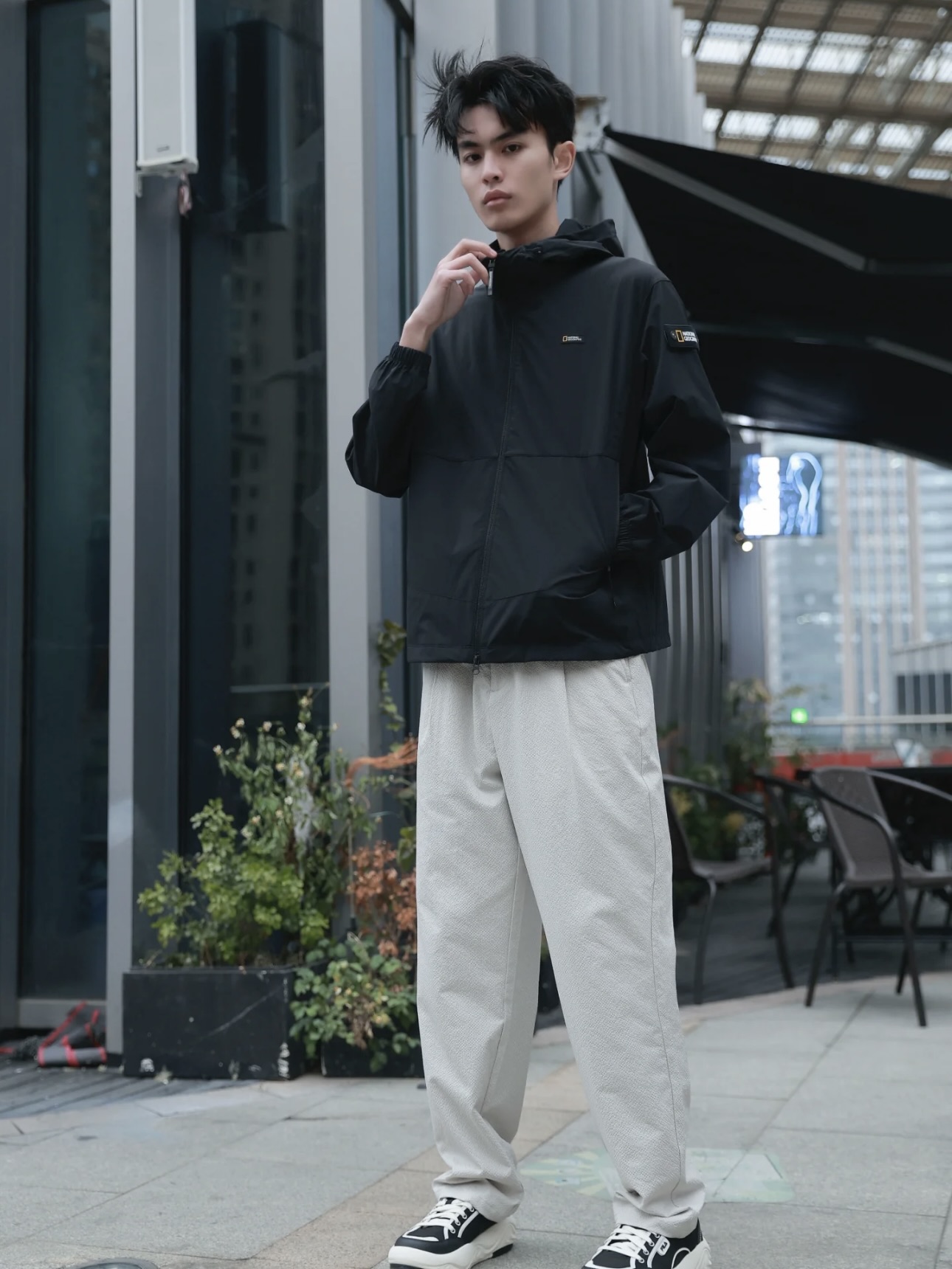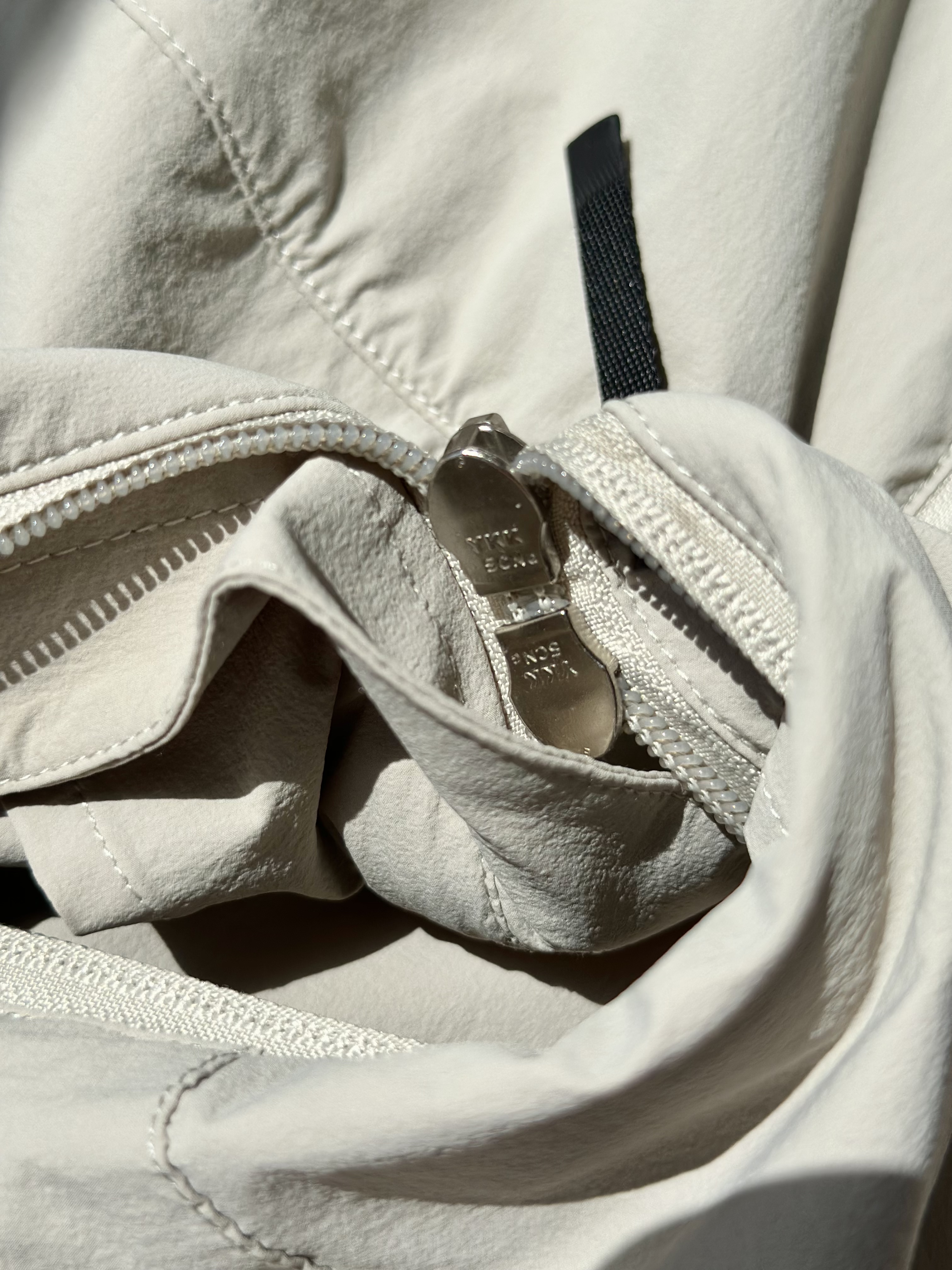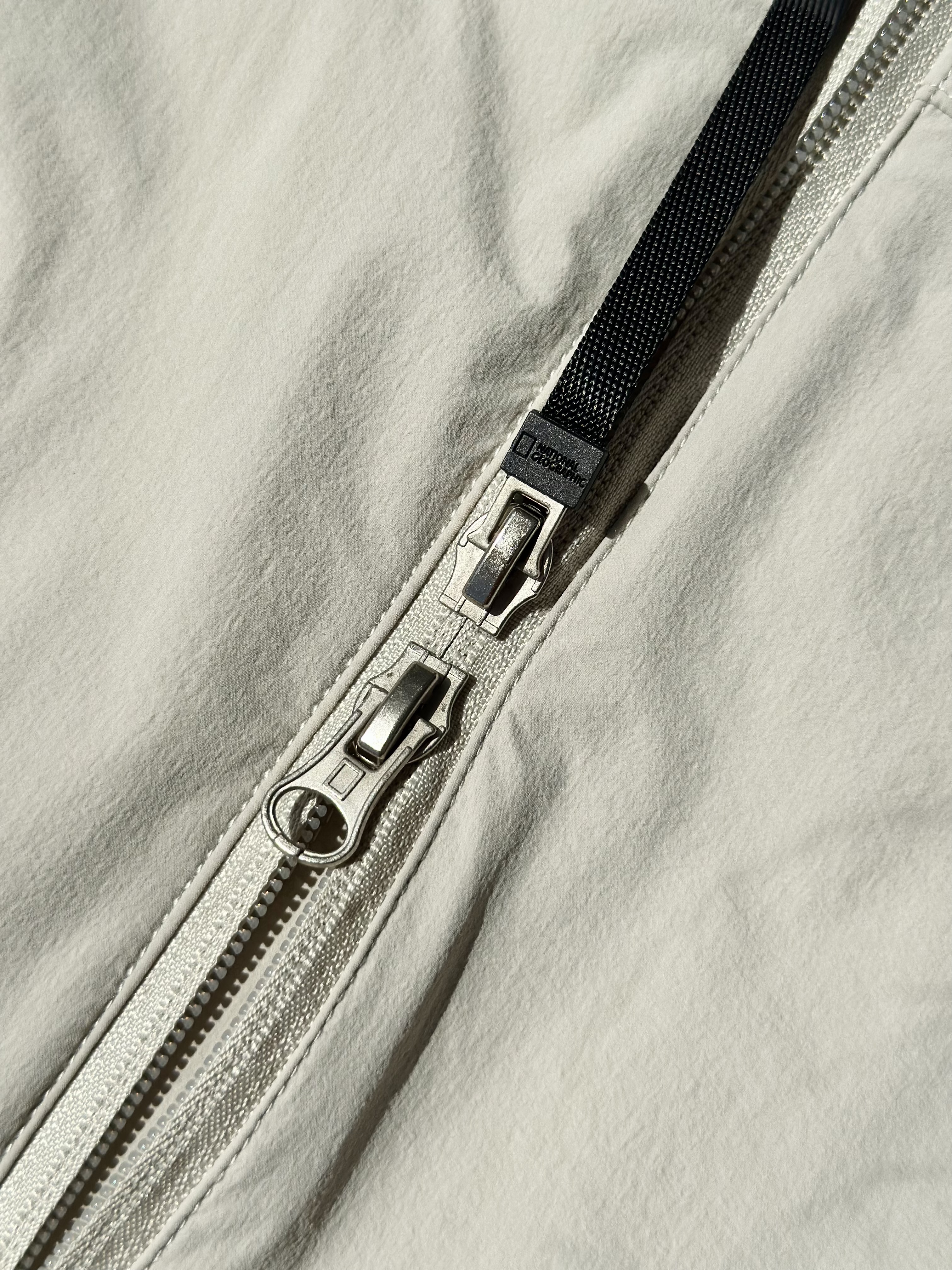 前门襟采用ykk双拉链设计,两侧增加拉链口袋侧兜,方便储物;