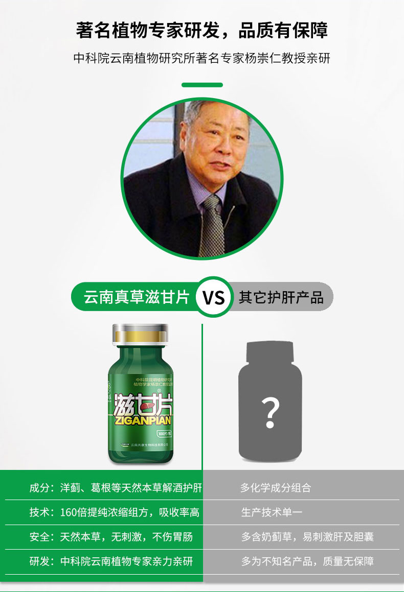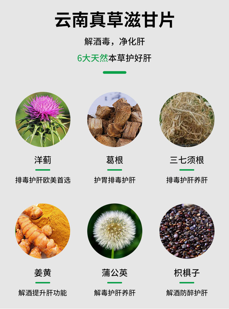 热卖中【云南著名家杨崇仁教授亲研滋甘片】中科院云南真草滋甘片 护肝熬夜少运动 道地6味 云南真草配伍零添加零副作用