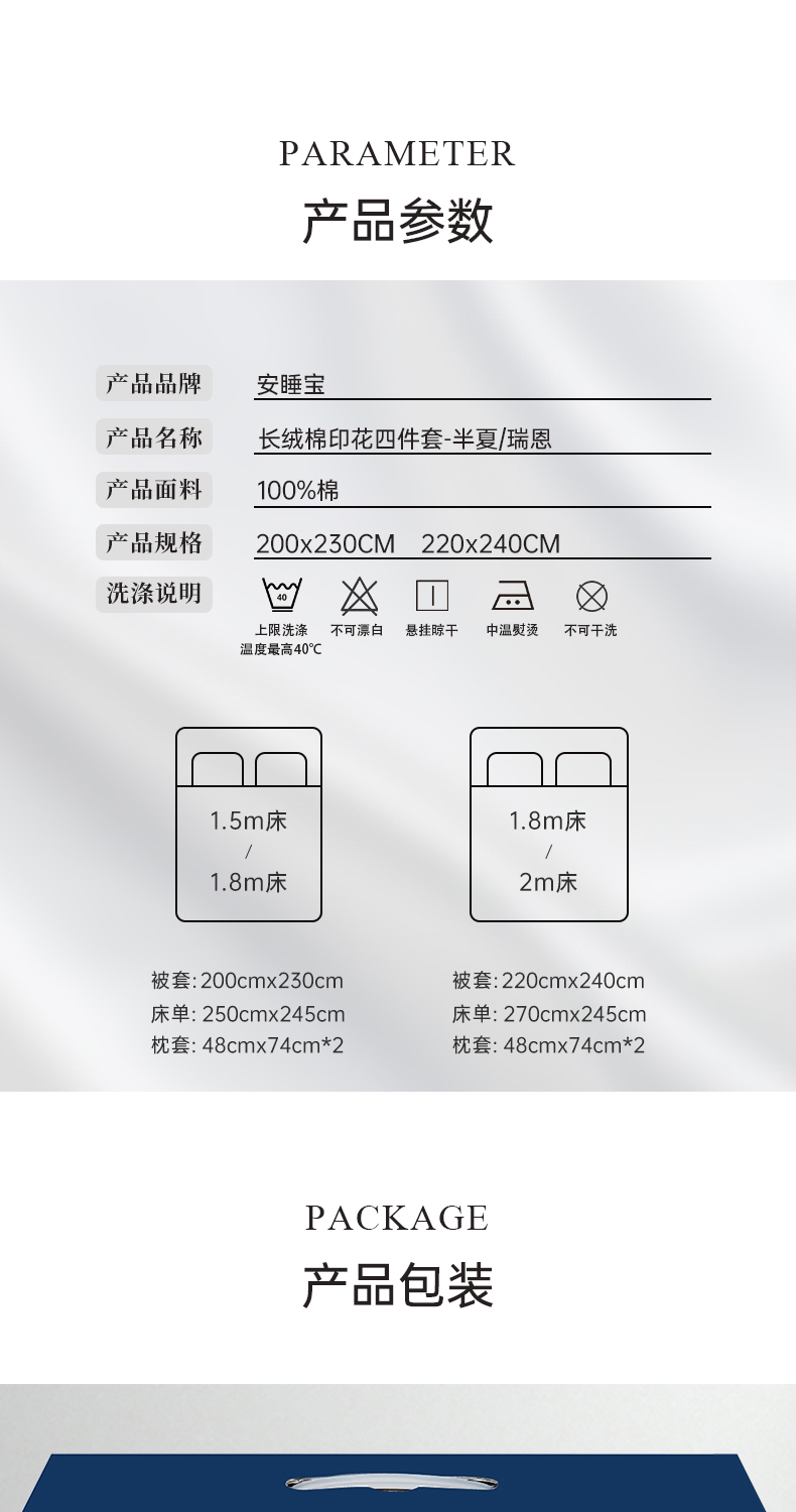 【云粉节】10楼 安睡宝 长绒棉印花双人四件套-半夏/瑞恩 吊牌价2799元 活动价899元