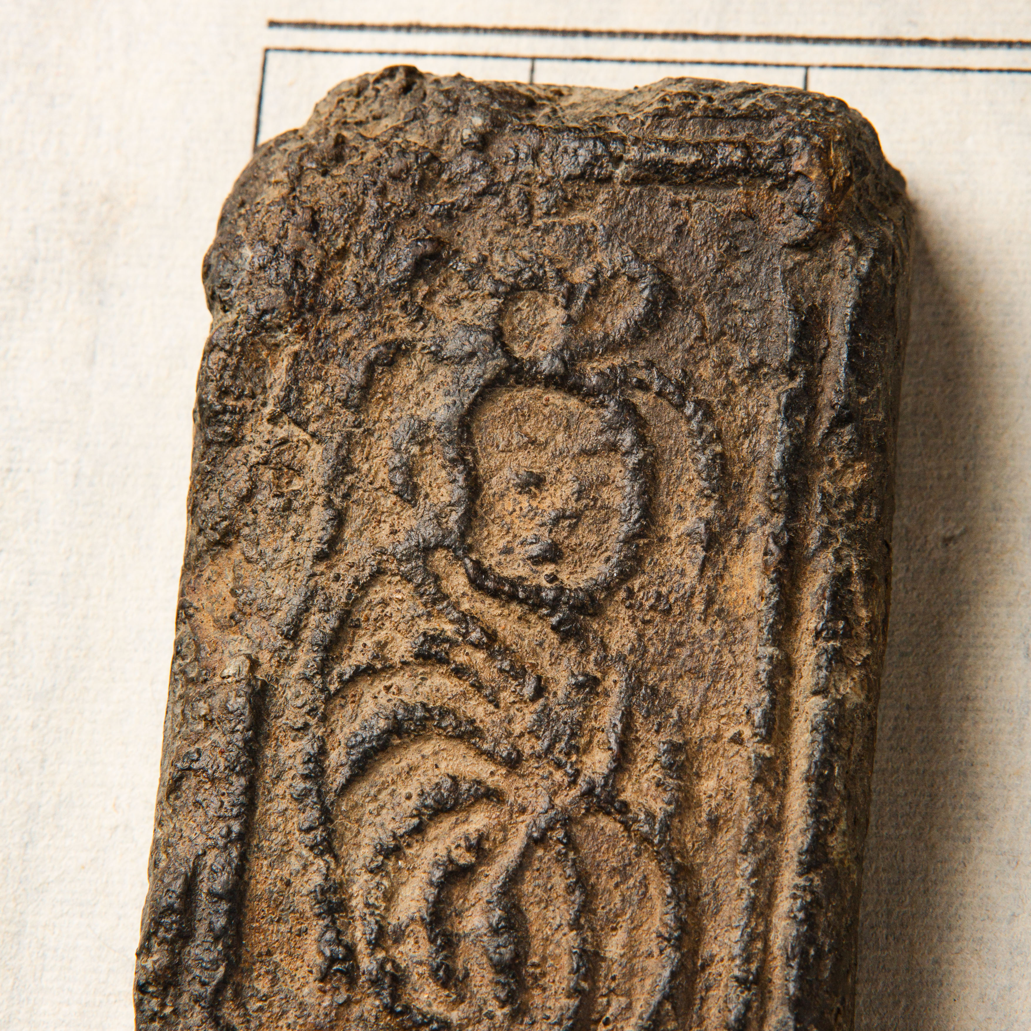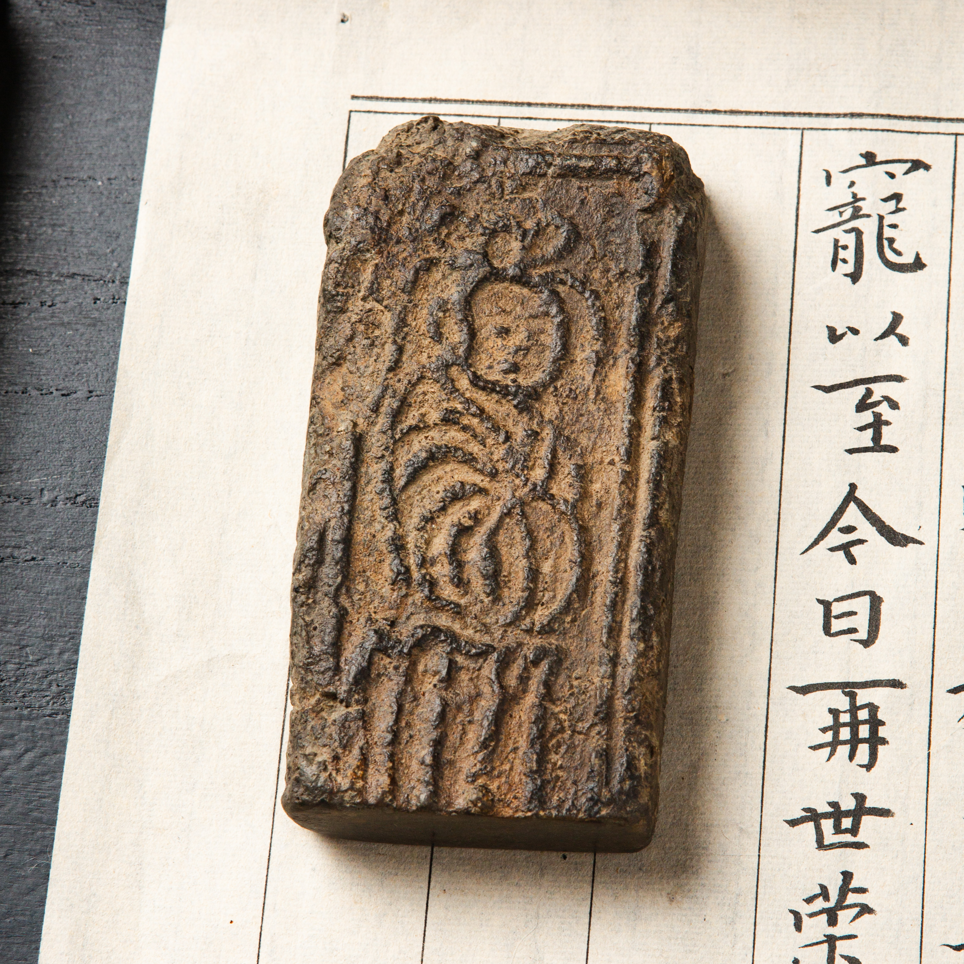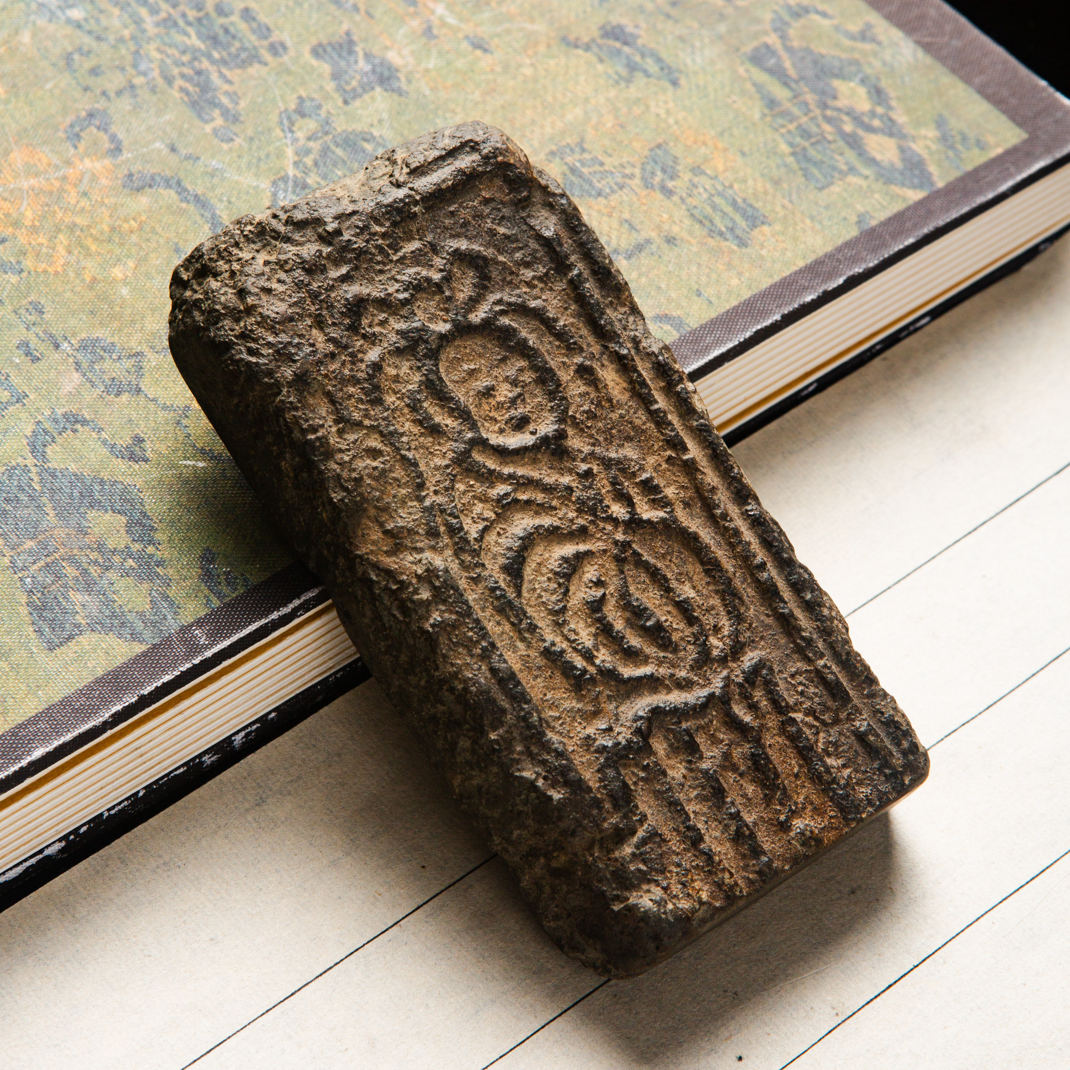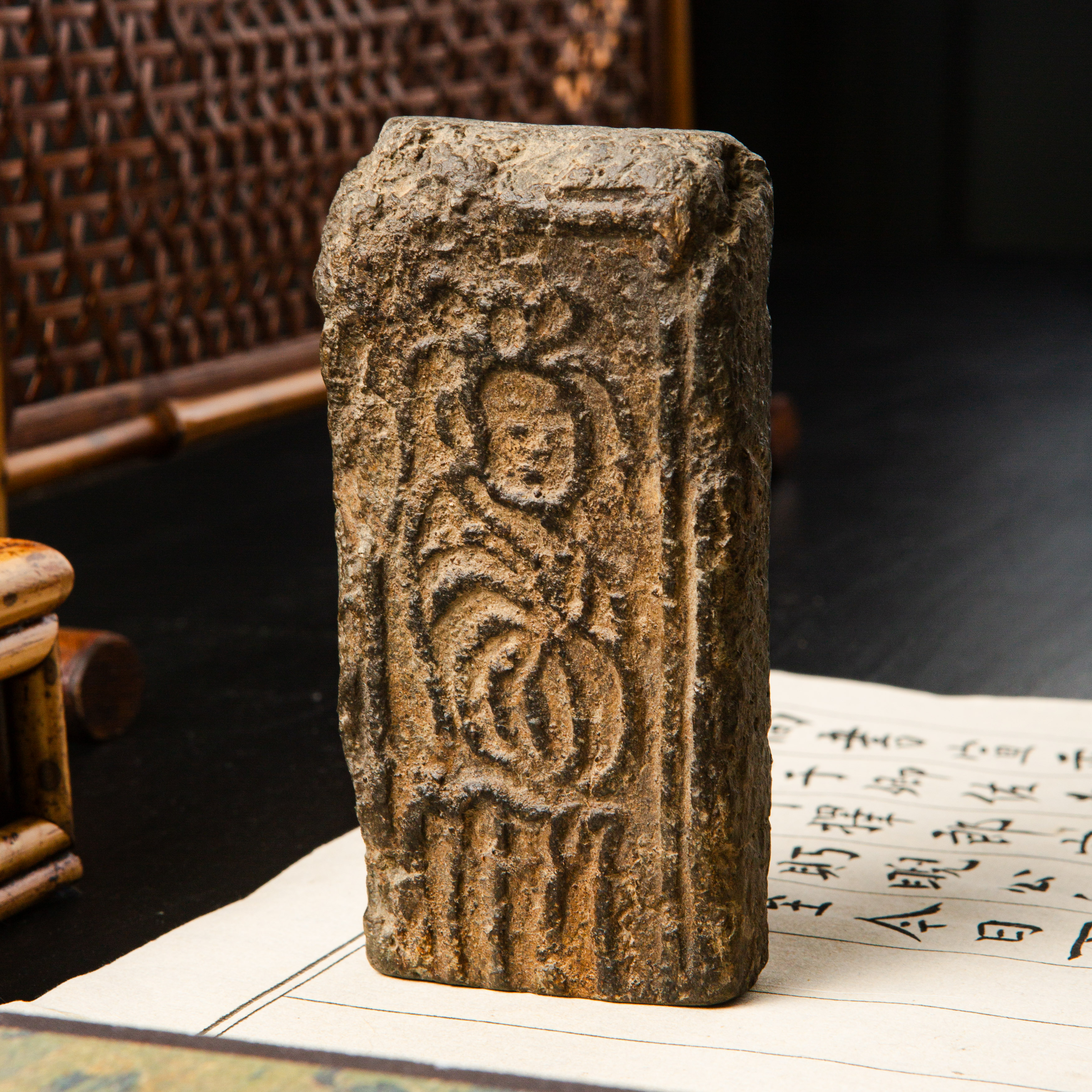 “菩萨造像”古砖制镇纸,图案精美,器型典雅,气息古朴,为文人案头之佳品。