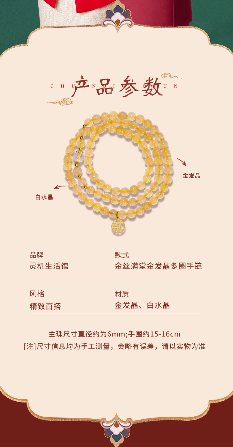 【灵机生活馆】金丝满堂金发晶多圈手链