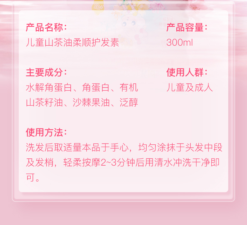 儿童山茶油柔顺护发素300ml送小样