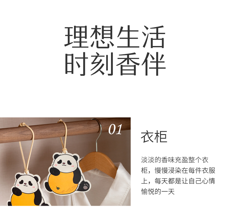 【理想屋】熊猫香片四片装 家用衣柜高级香卡衣橱除味衣物香氛车载香薰持久留香神器