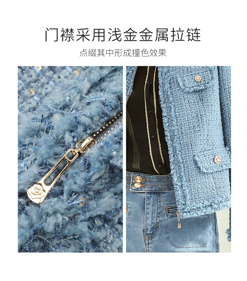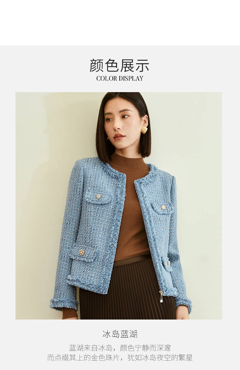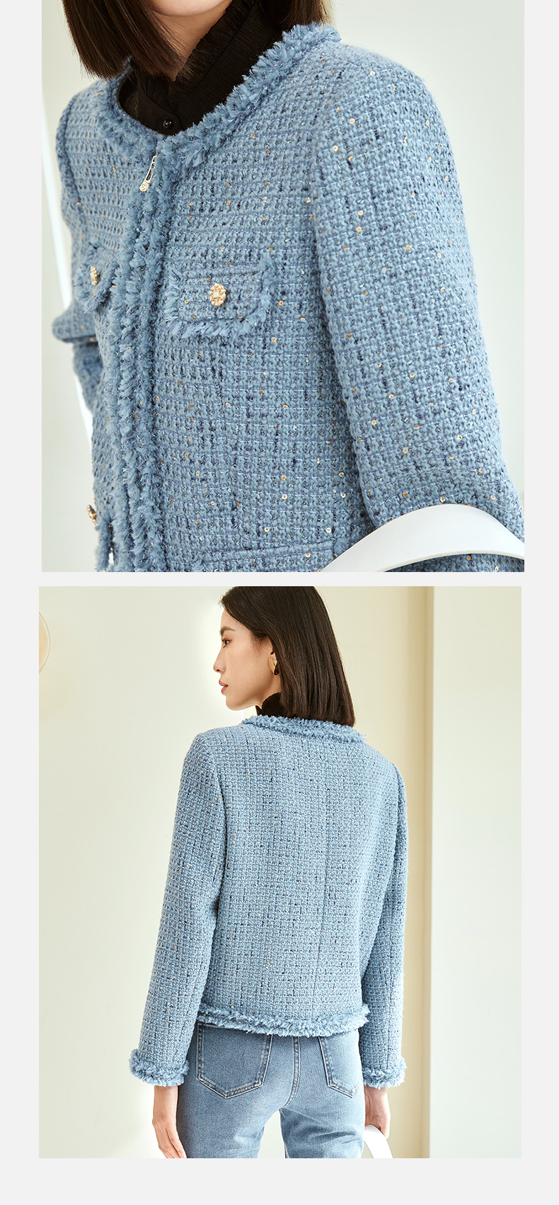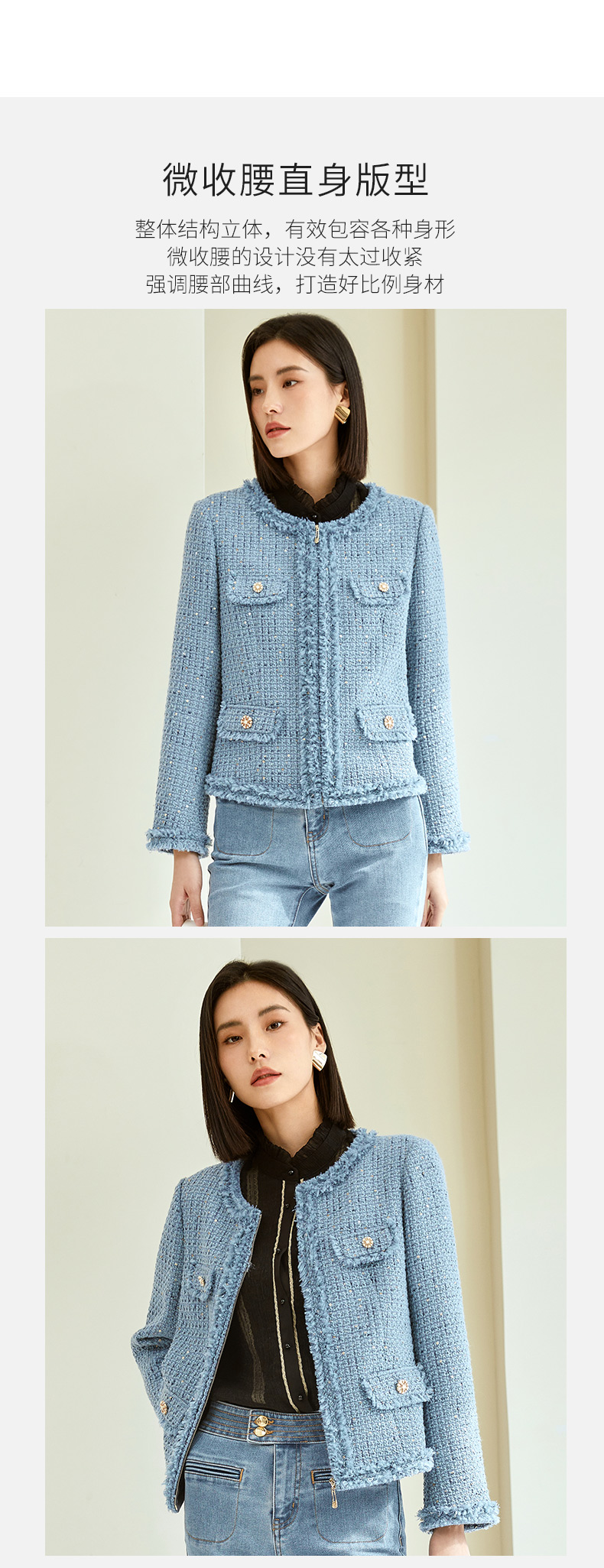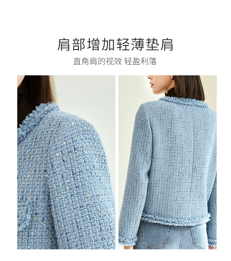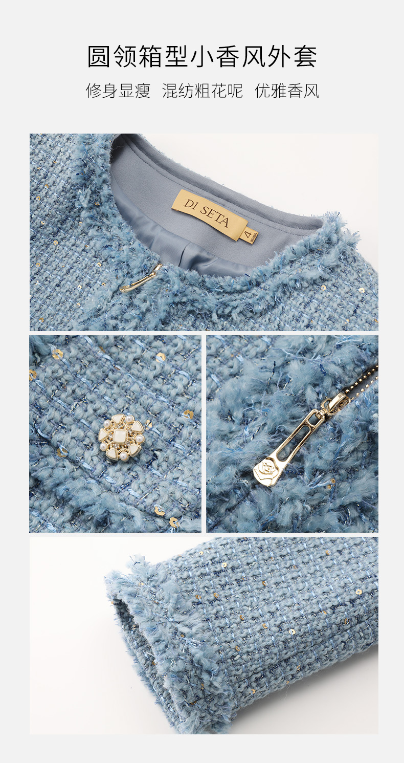 玳莎小香风箱型外套女秋季亮片拉毛高级感粗花呢圆领上衣 DC37305