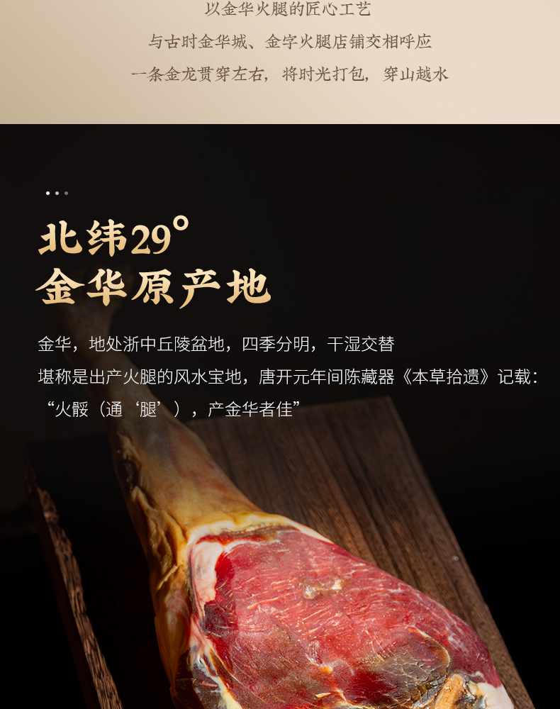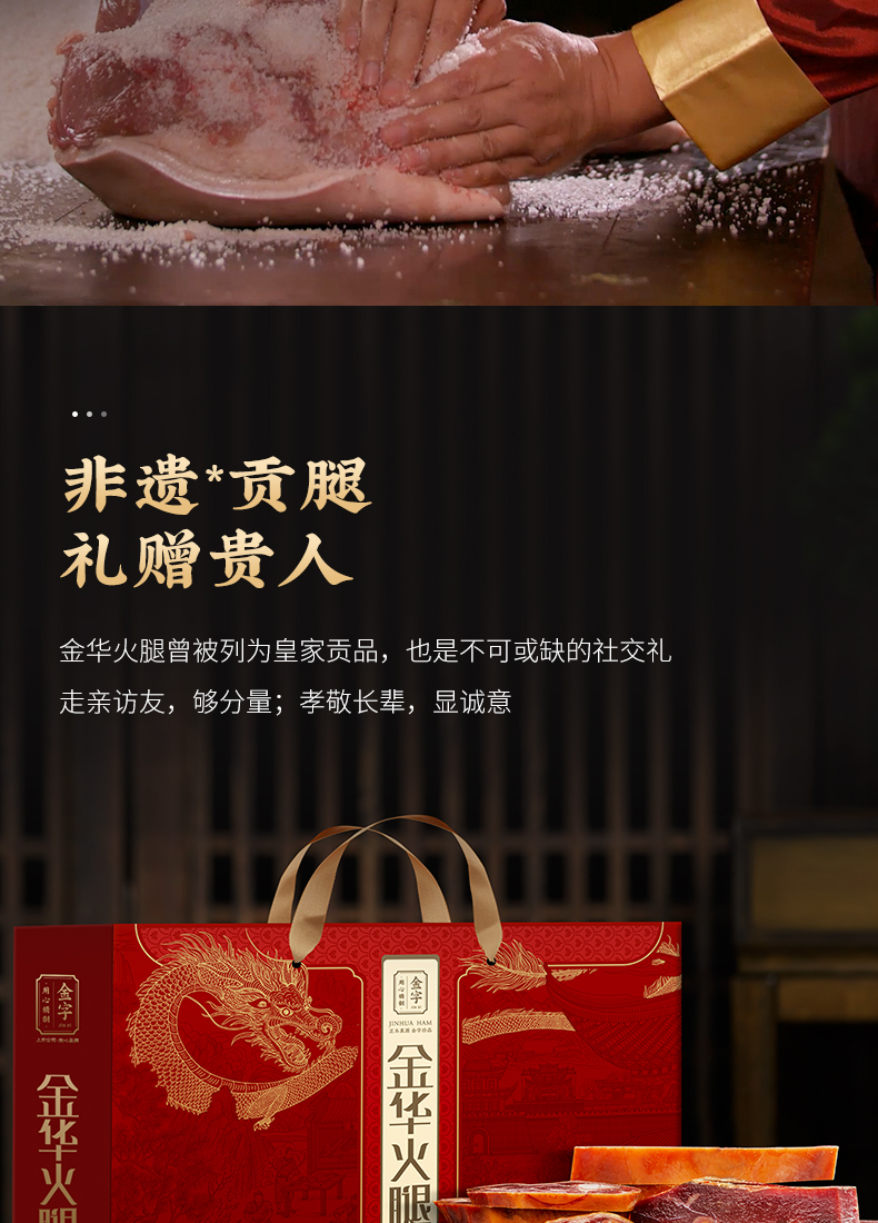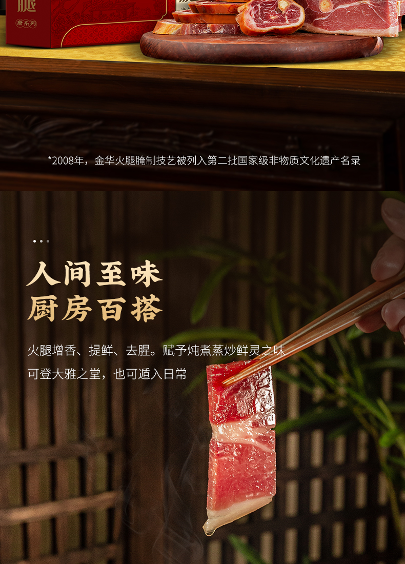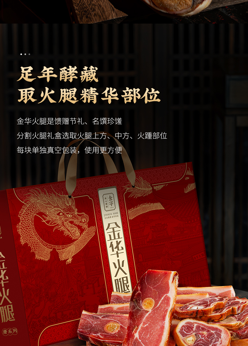 《舌尖》认证!非遗工艺!鲜香封神!金华火腿龙头品牌 金字26年唐系列火腿礼盒 火腿块/整腿