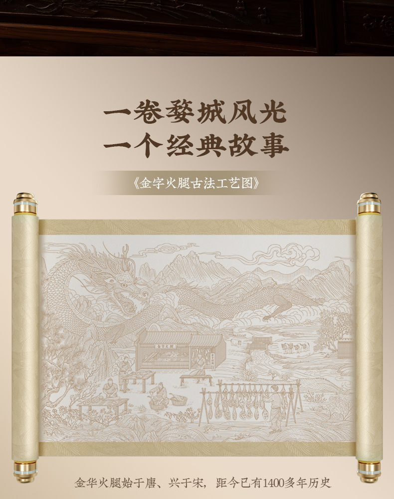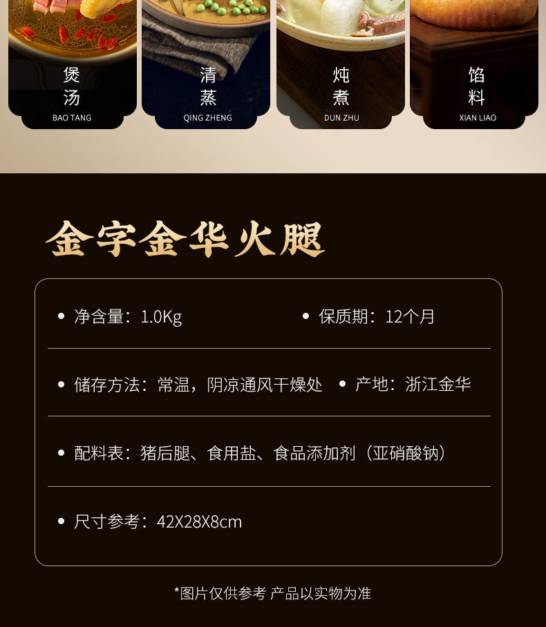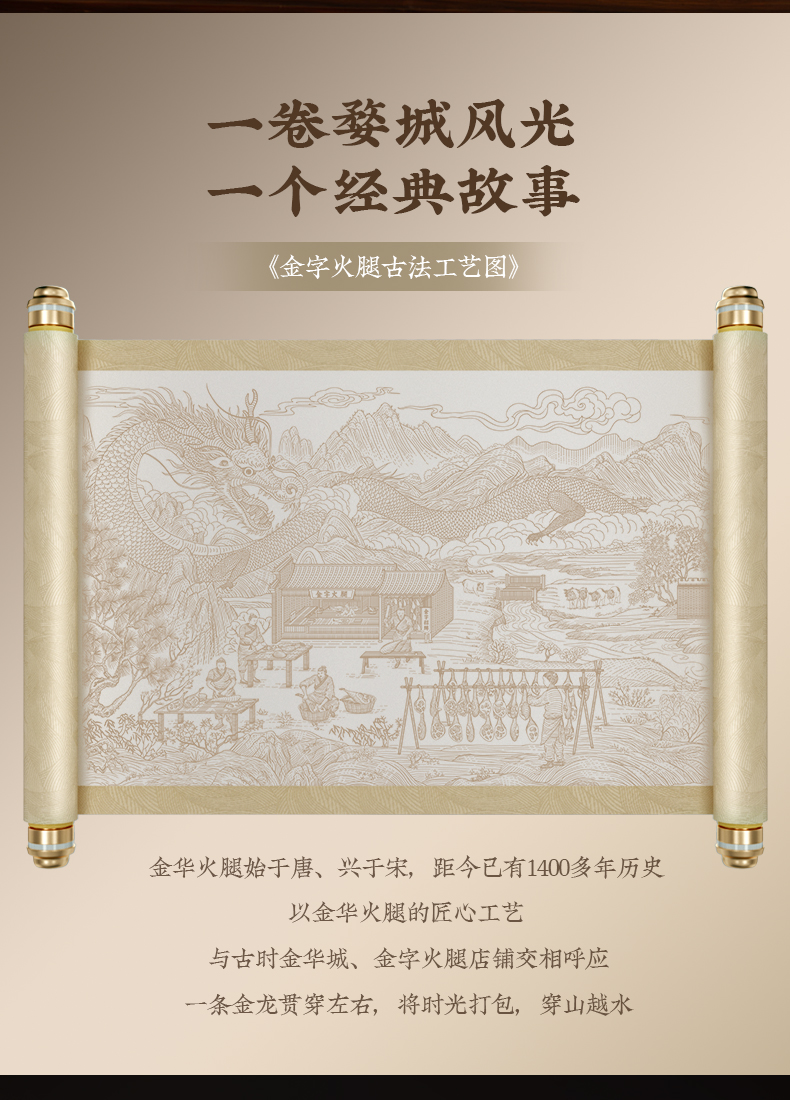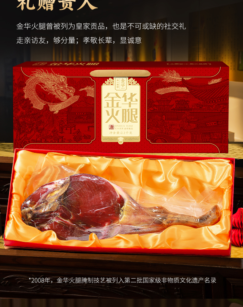 《舌尖》认证!非遗工艺!鲜香封神!金华火腿龙头品牌 金字26年唐系列火腿礼盒 火腿块/整腿