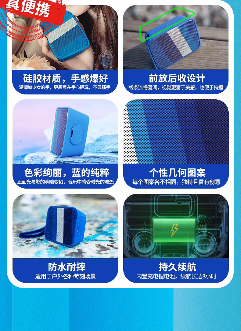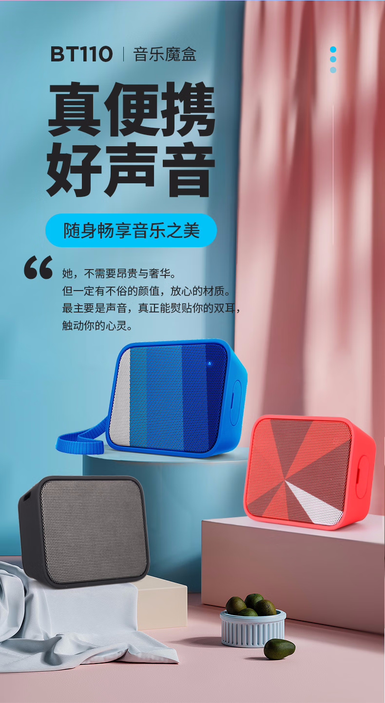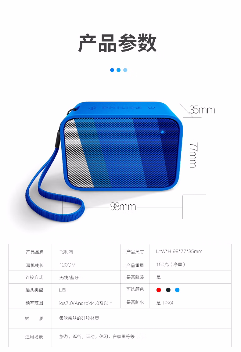 【快递包邮】飞利浦无线便捷式蓝牙音箱(蓝色)BT110