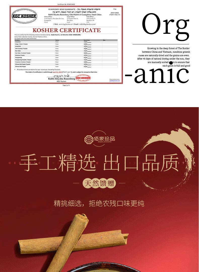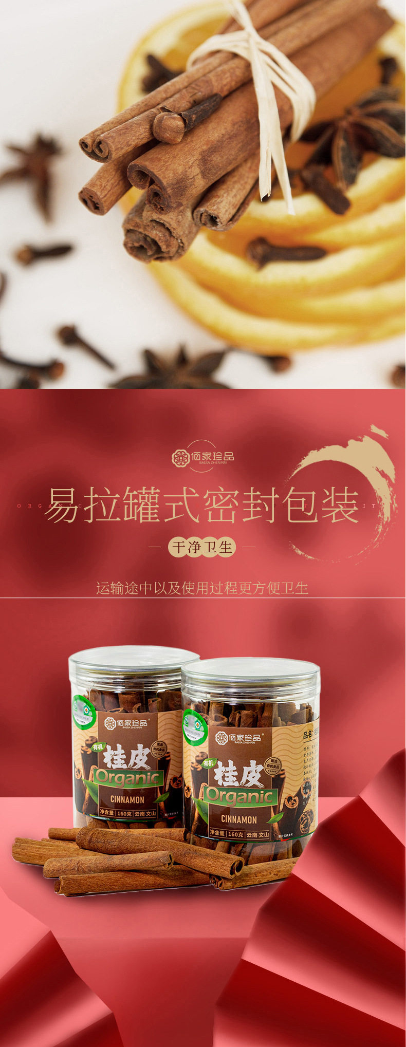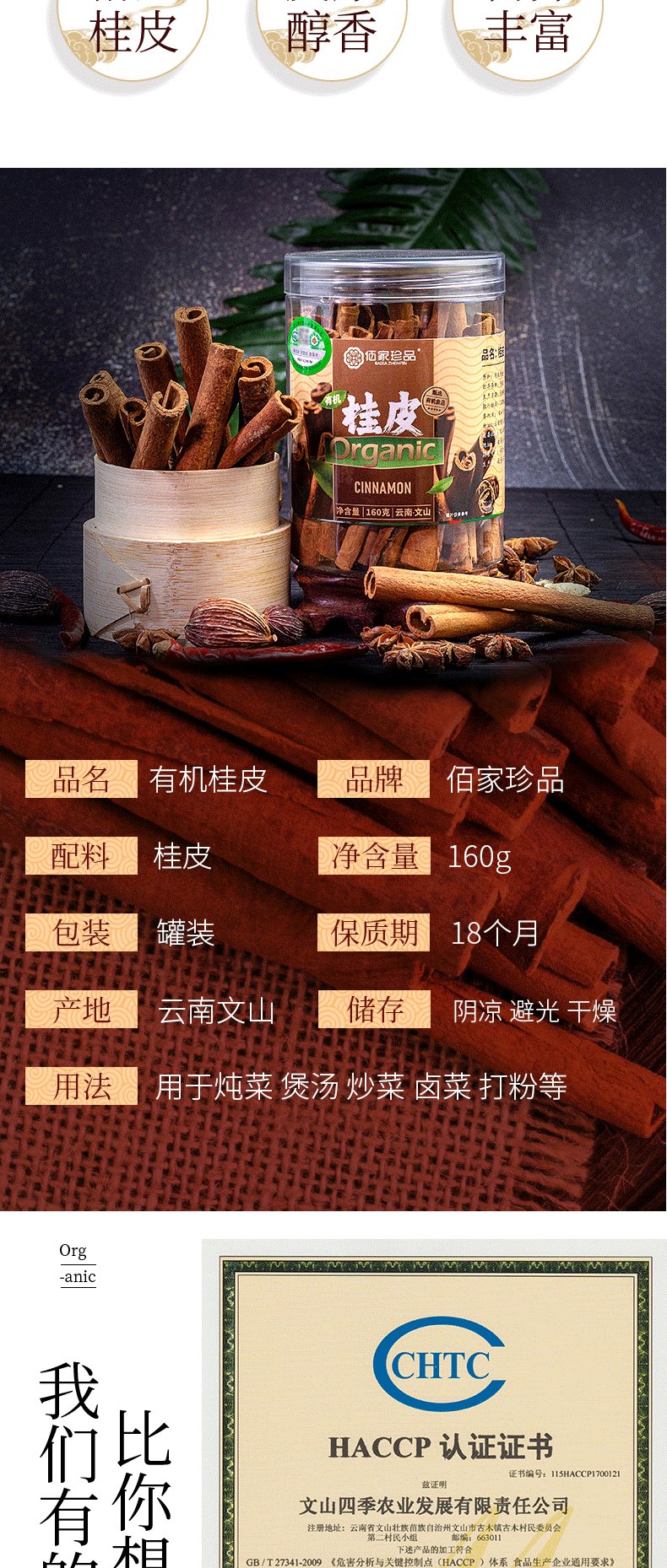 佰家珍品,厂家直供,有机云南桂皮棒160克/瓶