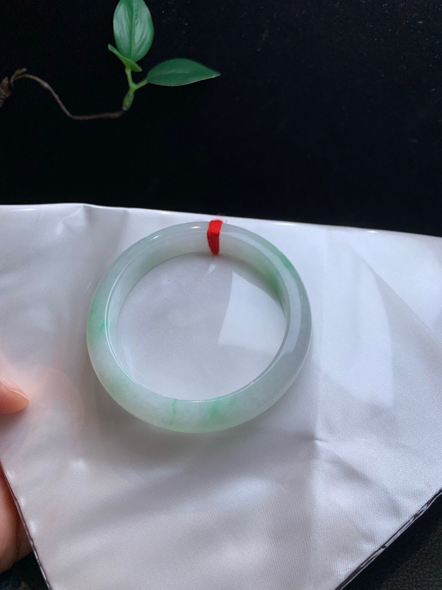 612788,56.5飘绿手镯,12.5-7.6mm,整条清新干净,飘清新绿,秀气清爽,完美清秀,超值价💰12600 #优石客珠宝#香玉荟萃