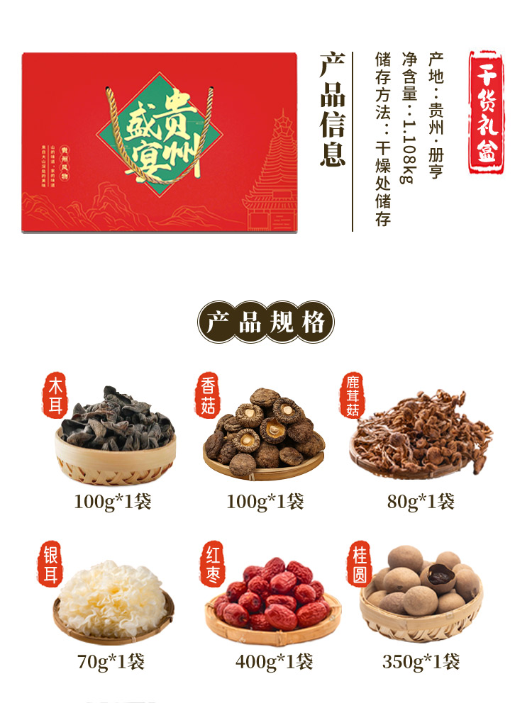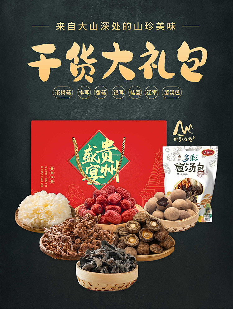 【黔味风行】贵州盛宴干货礼盒(内含灵芝250g;香菇500g;木耳250g;卤汤包一袋)