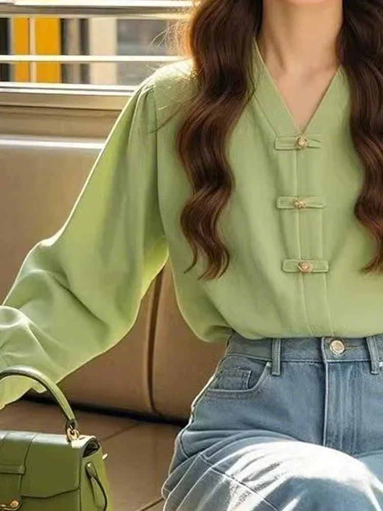 裁缝学苑AQ436新中式盘扣长袖衬衫纸样女装国风复古上衣小衫样板