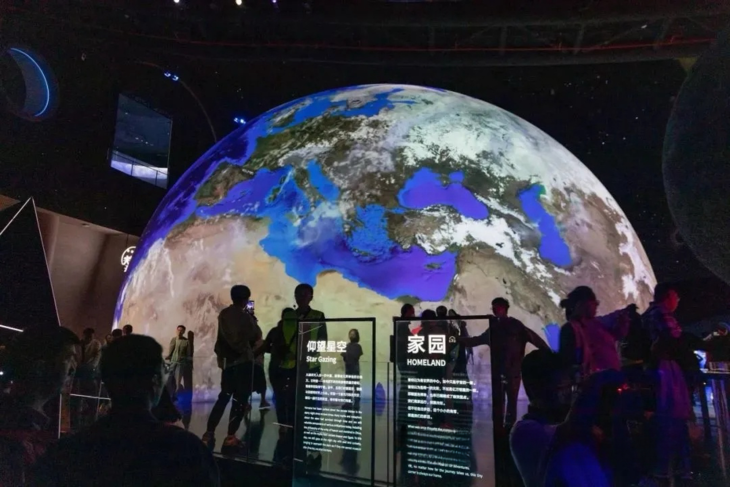 "家园"展区从我们久违的星空开始,世界上最先进的光学天象仪,将璀璨星河呈现在孩子们眼前。