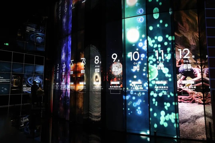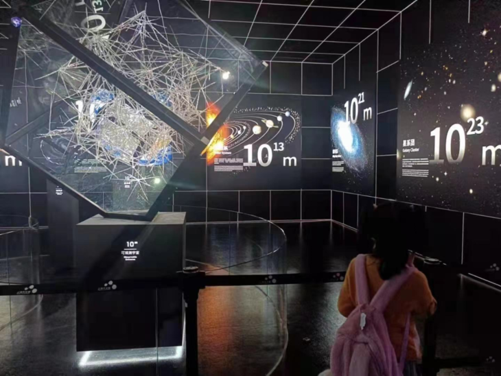 "宇宙"展区共有"时空"、"引力"、"光"、"元素"和"生命"五个主题区,从不同的视角展现宇宙的运行规律。