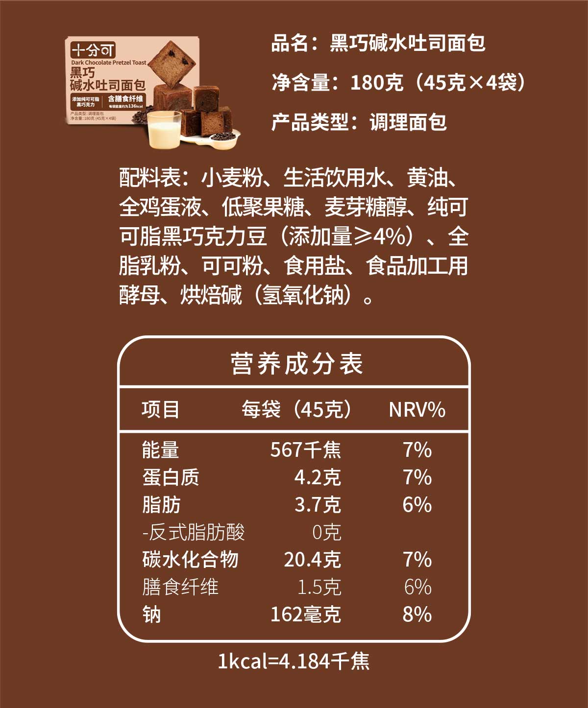 十分可全麦燕麦藜麦碱水吐司纯可可脂黑巧牛乳玫瑰碱水吐司2箱*4个现做现发21天短保