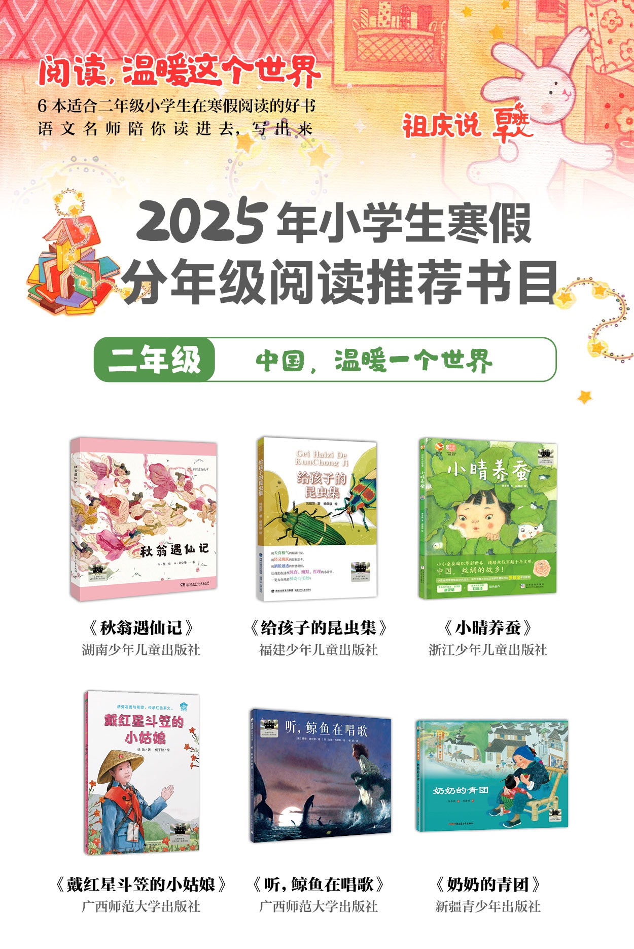 祖庆说|百班千人2025寒假书单二年级:秋翁遇仙记 小晴养蚕 给孩子的昆虫集 戴红星斗笠的小姑娘 听,鲸鱼在歌唱 奶奶的青团 (按需自选加入购物车)