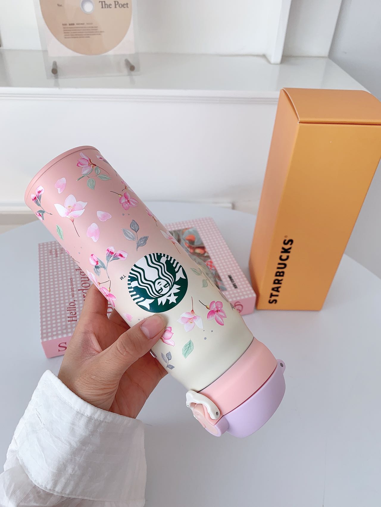 ✅樱花粉渐变杯身缀满浪漫花簇