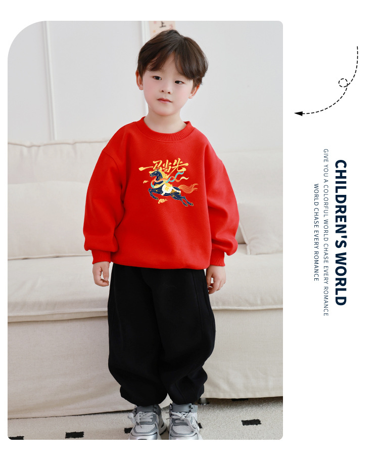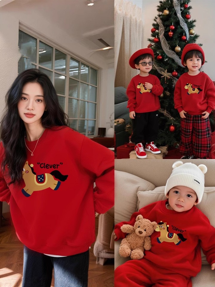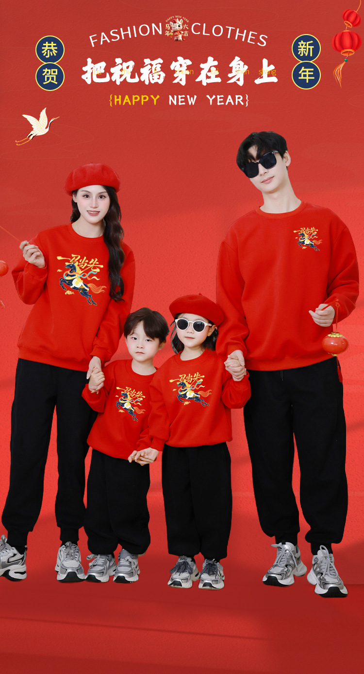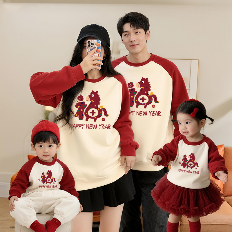 【柔软保暖舒适❗️营造新年氛围感】2026马年新年春节秋冬季新款国潮风马年亲子装卫衣新年全家款加厚一体绒上衣母女装。jb