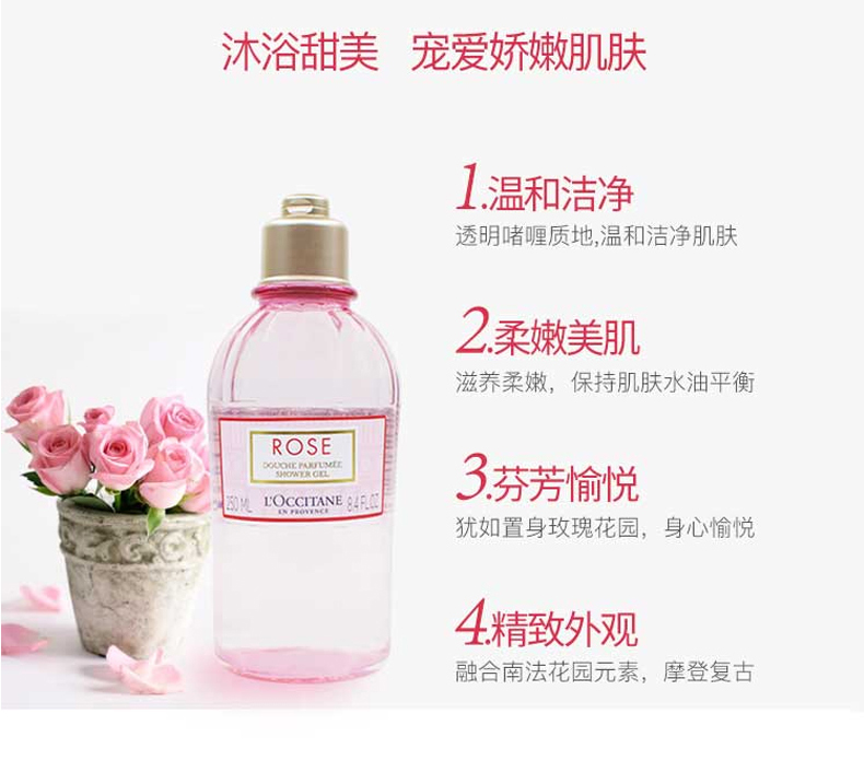 欧舒丹玫瑰之心沐浴啫喱泡沫沐浴露250ml