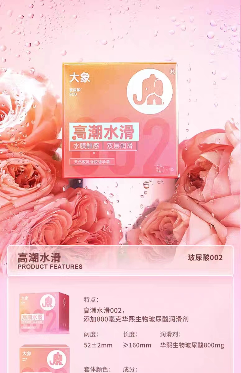 【高潮水滑】大象水滑小粉钻玻尿酸避孕套