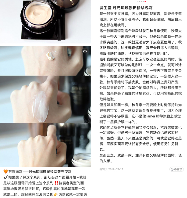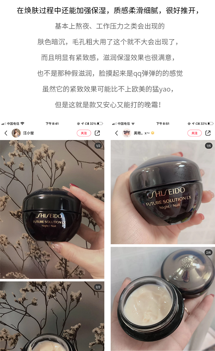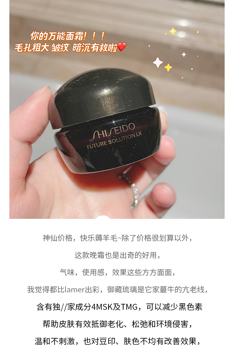价值774元 国内专柜 资生堂时光琉璃面霜晚霜15ml 滋润抗衰淡纹