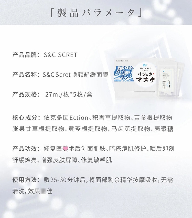 scret细胞修复面膜镇定修护敏感肌术后可用补水保湿5片