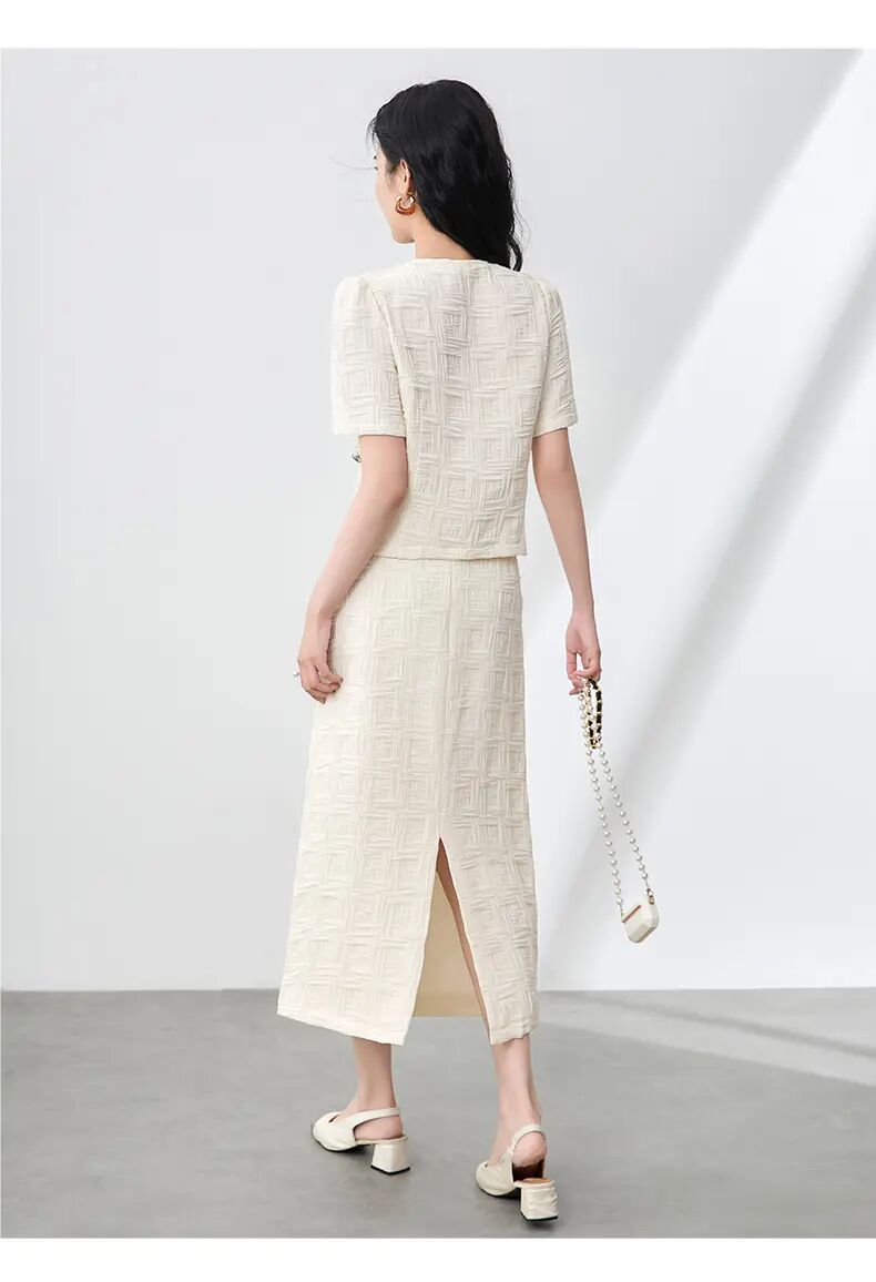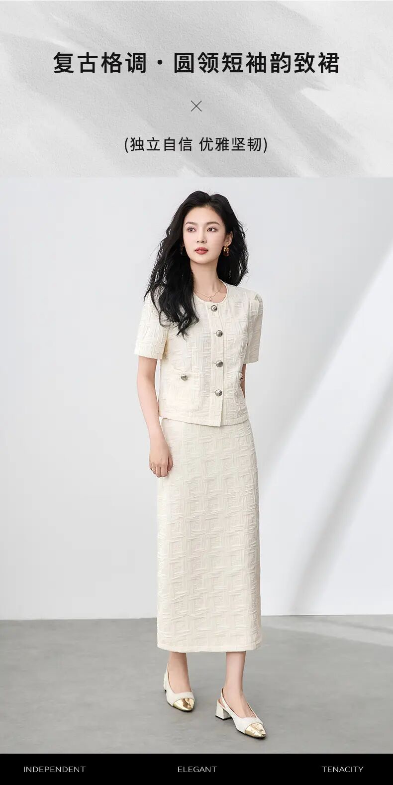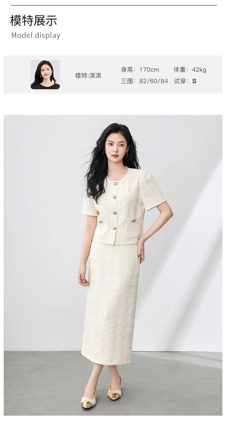 「高货wl」全新升级【铂金会员321/天猫429/差价108】(99933)洛诗琳时尚气质优雅小香风短袖上衣肌理感包臀半身裙两件套