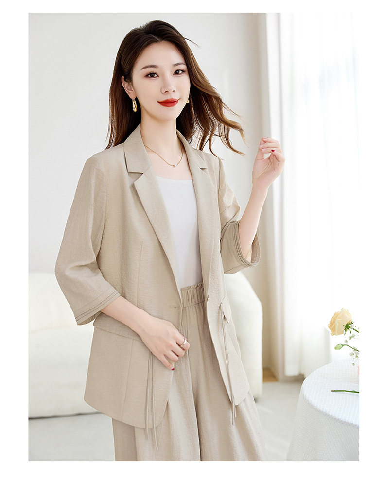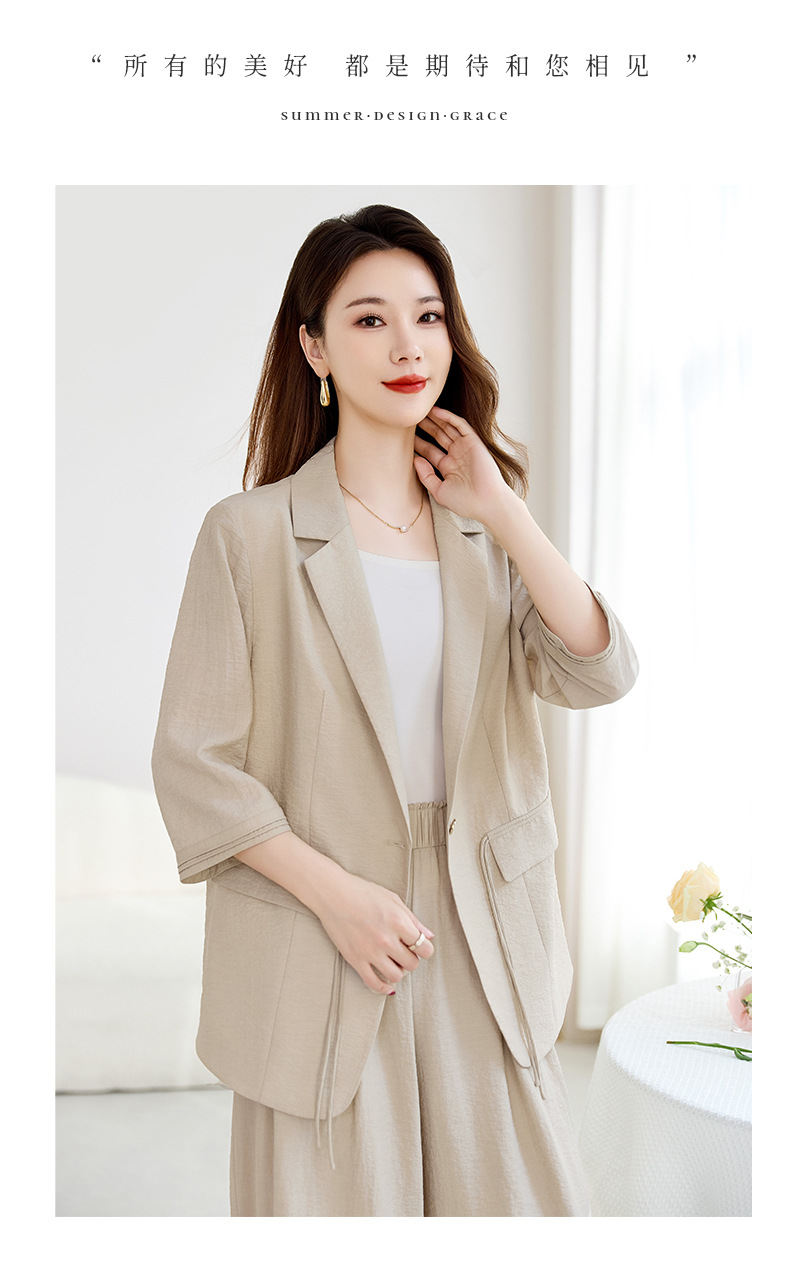 真丝桑锦绸V领小西装,轻奢高端真丝桑锦绸休闲西裤两件套SM-62599530