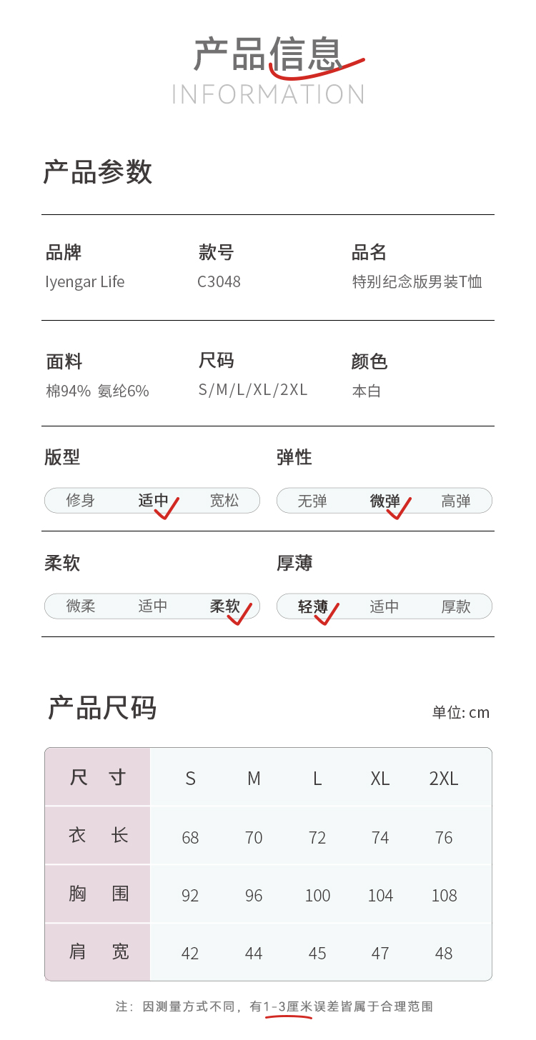 艾扬格life C3048特别纪念版瑜伽短袖男装T恤