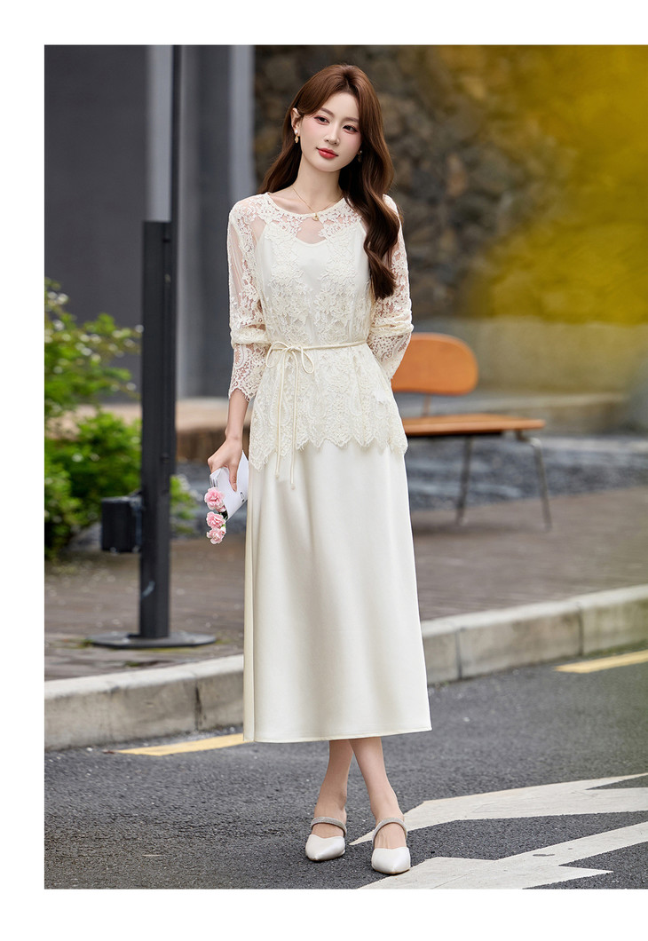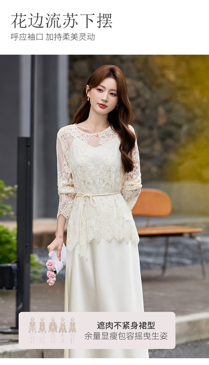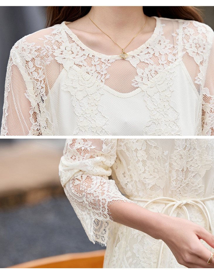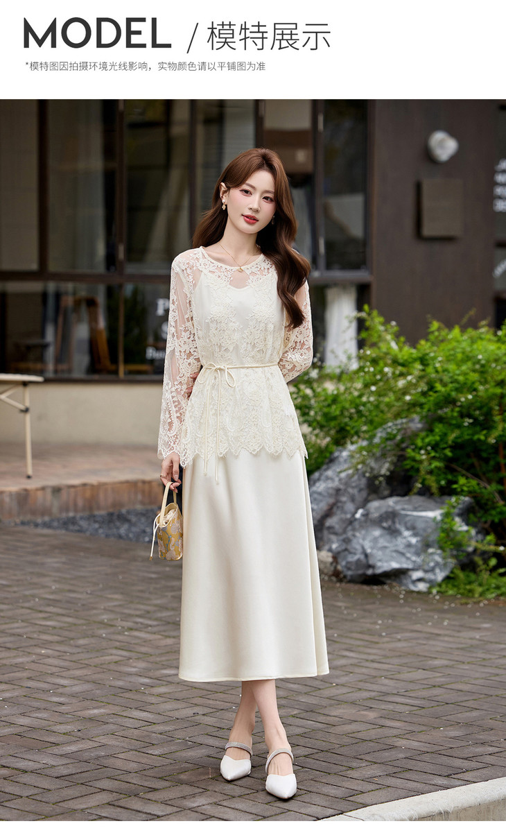 2026夏季新款式气质蕾丝镂空罩衫吊带裙两件套连衣裙YF2712 商品图4