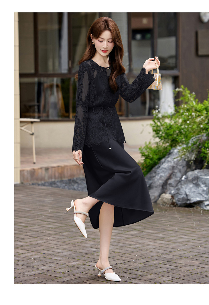 2026夏季新款式气质蕾丝镂空罩衫吊带裙两件套连衣裙YF2712