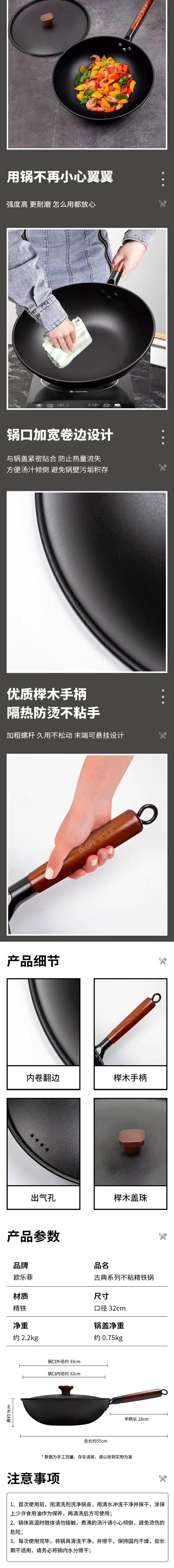 【官方正品保证】 欧乐菲章铁匠晶铁二代旋纹极铁锅-OLO32GF-T1