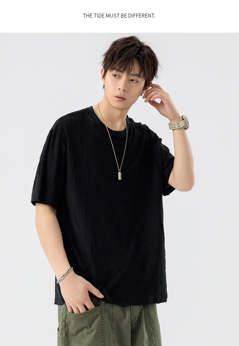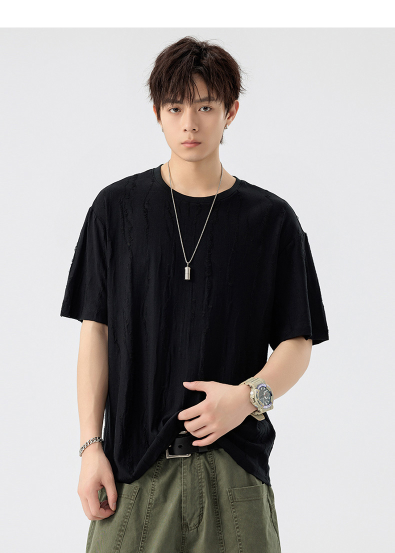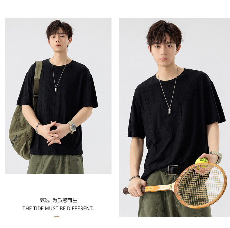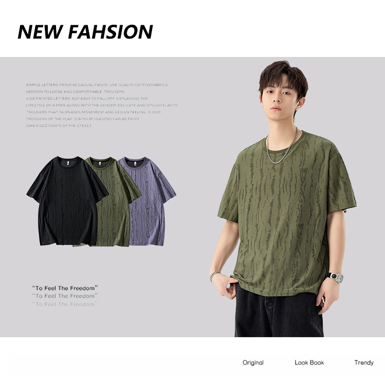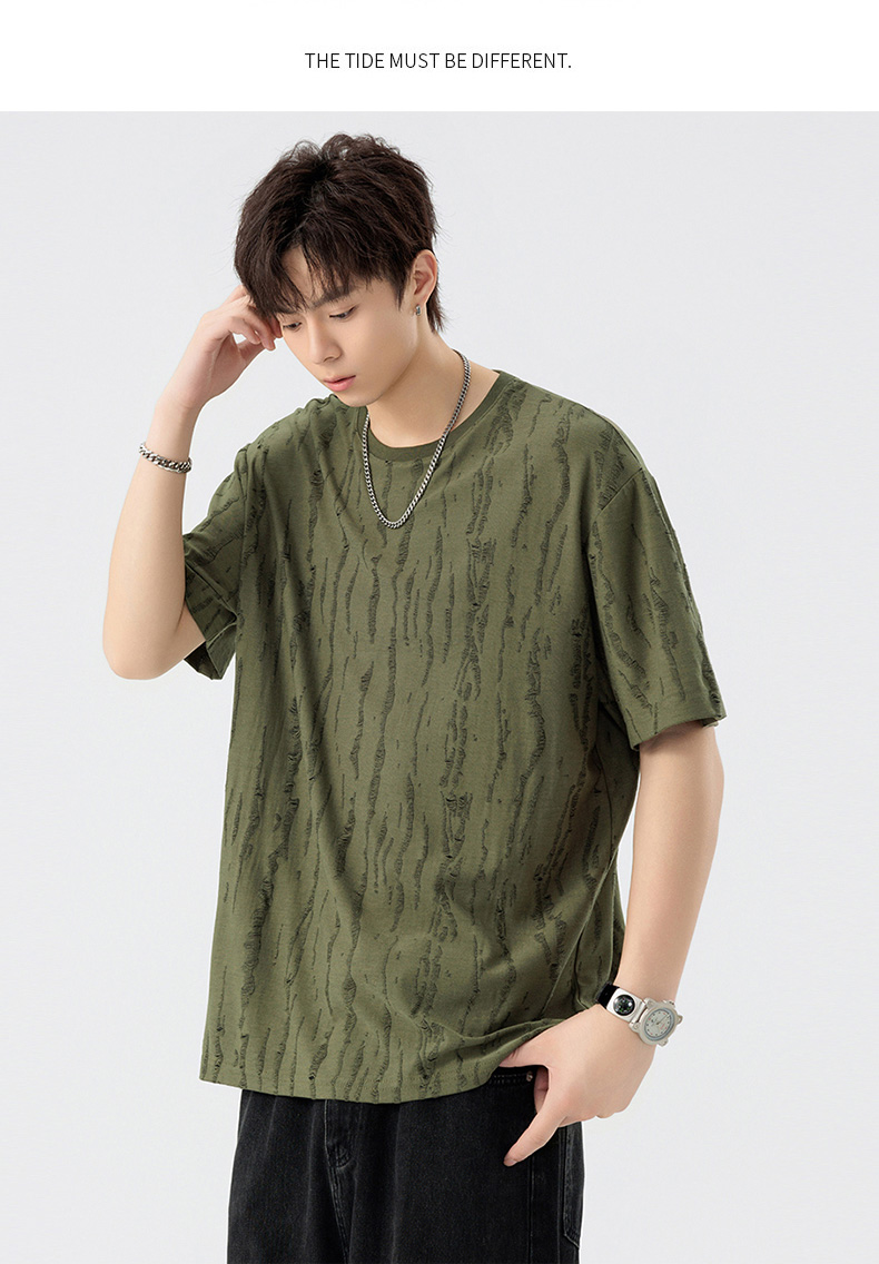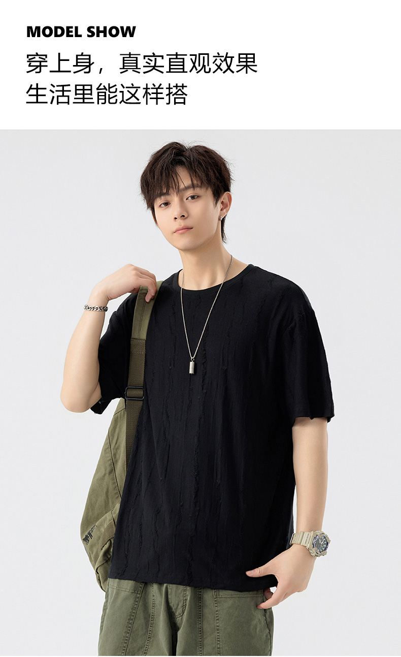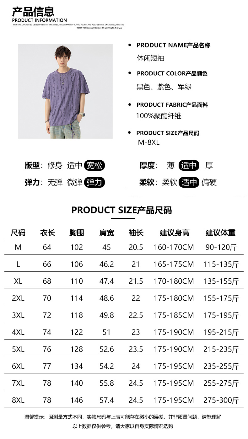 【DSL】大依优型大码圆领短袖T恤夏季加肥加大肥佬休闲宽松透气弹力男装上衣潮款