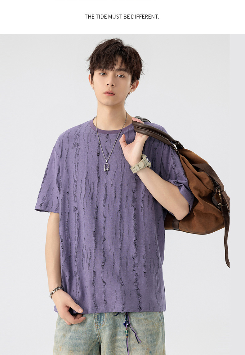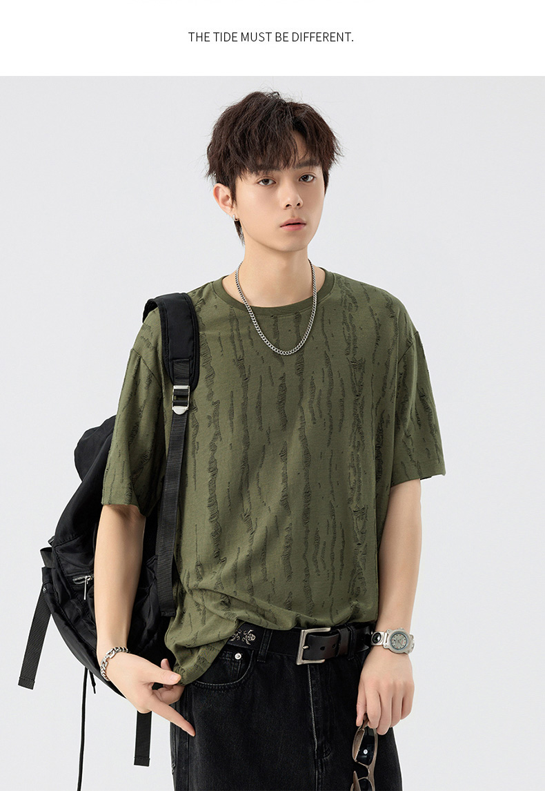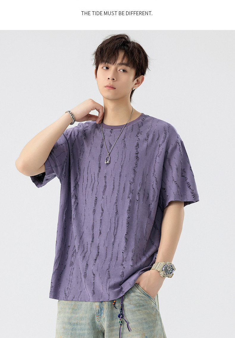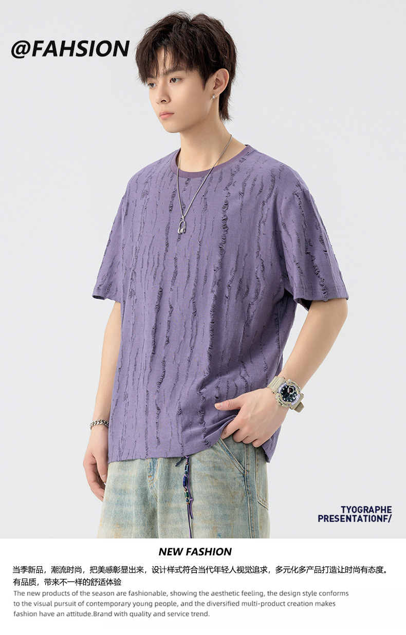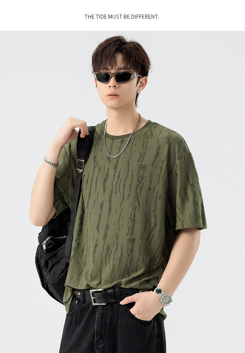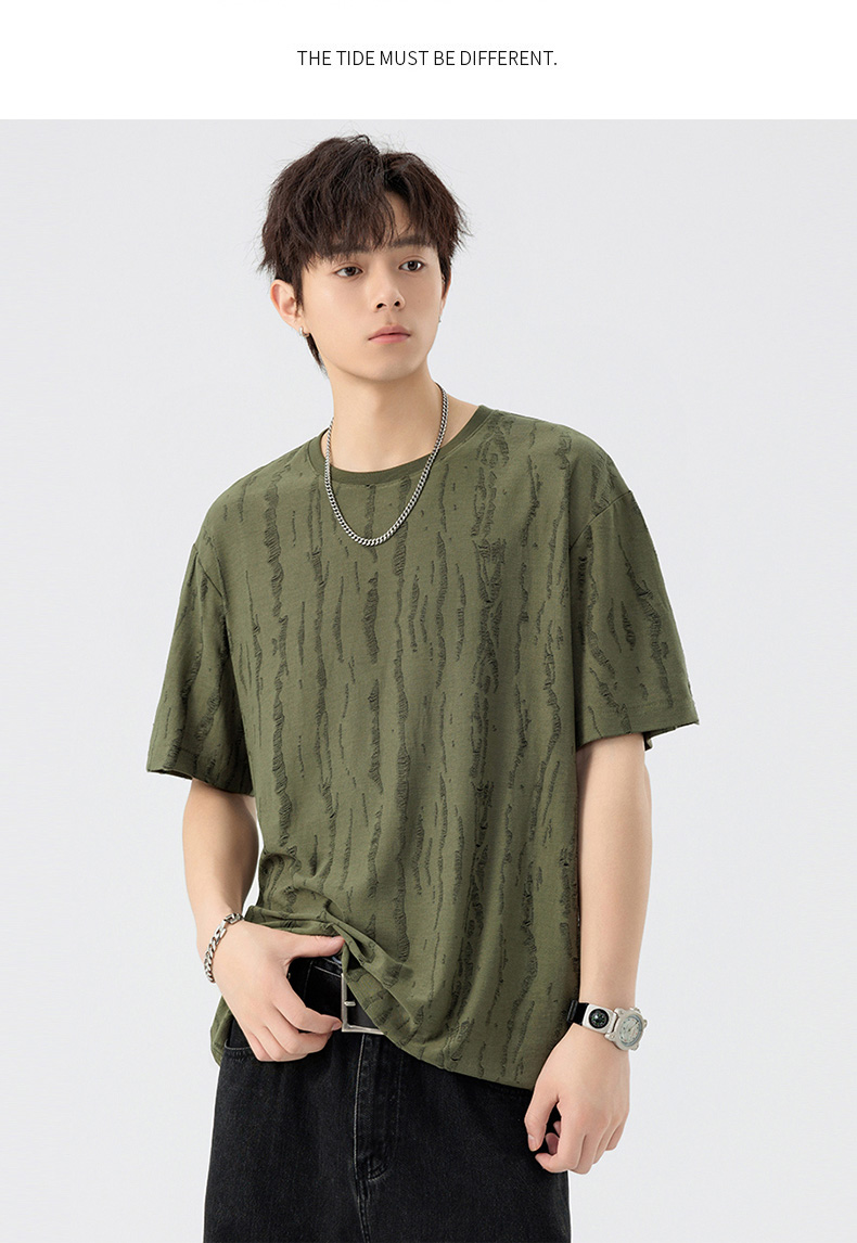 【DSL】大依优型大码圆领短袖T恤夏季加肥加大肥佬休闲宽松透气弹力男装上衣潮款